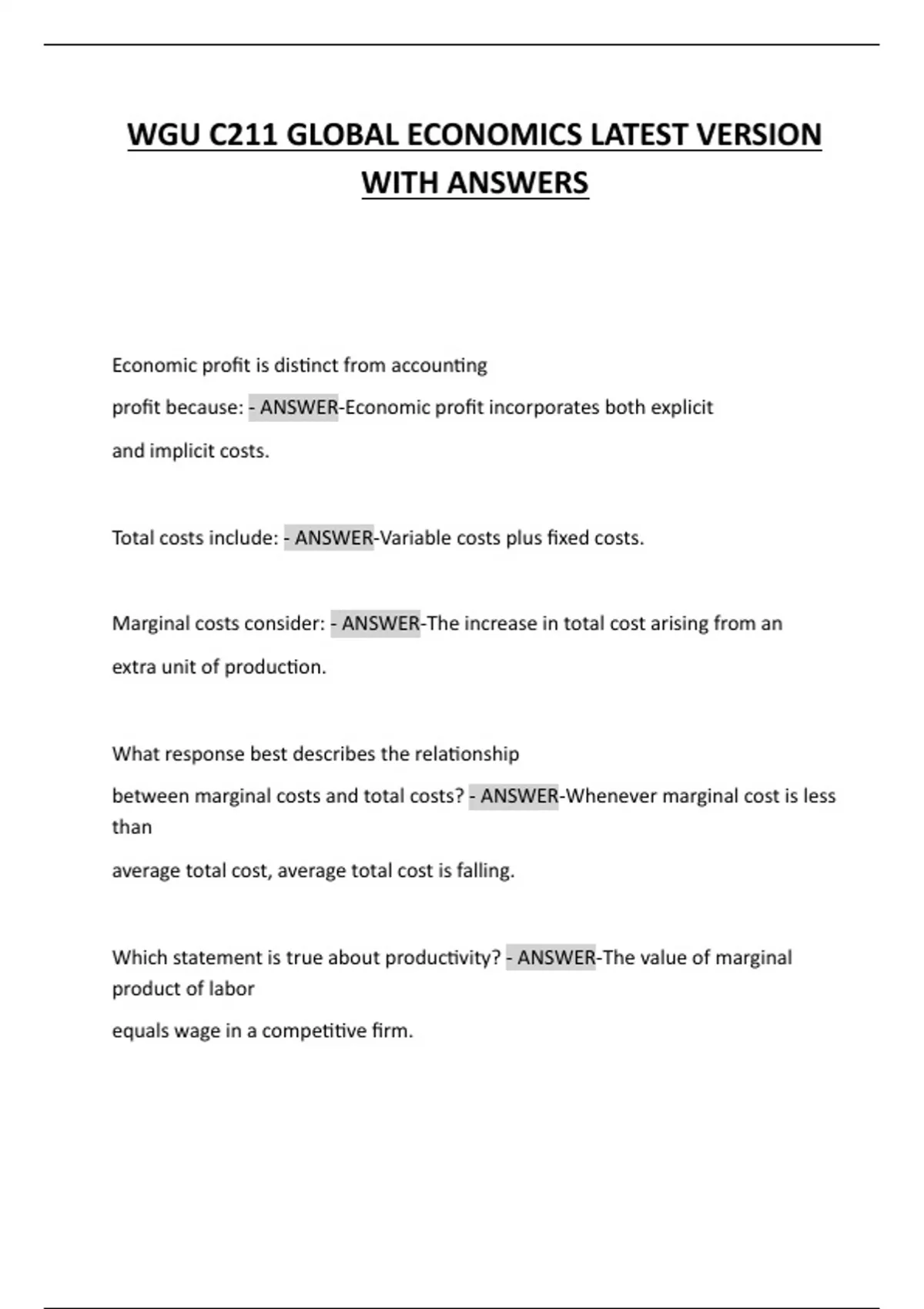 WGU C211 GLOBAL ECONOMICS LATEST VERSION