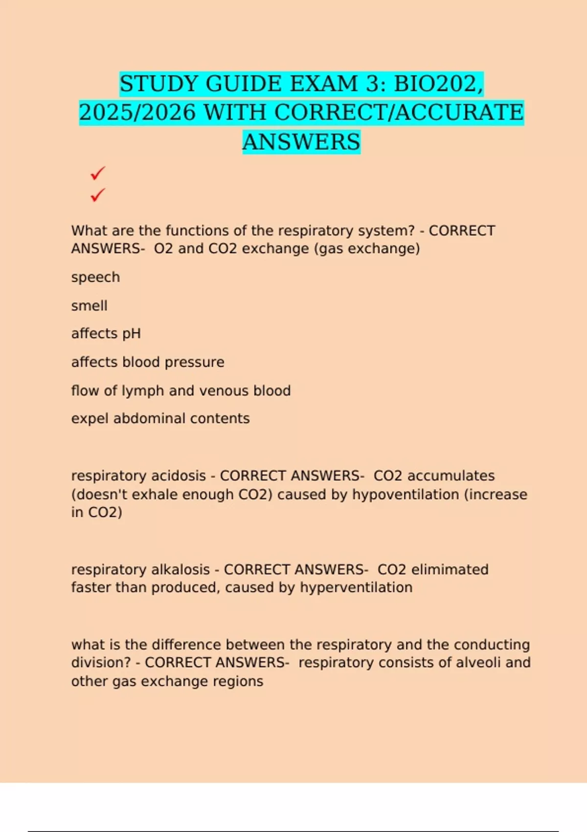 STUDY GUIDE EXAM 3: BIO202, 2025/2026 WITH CORRECT/ACCURATE ANSWERS