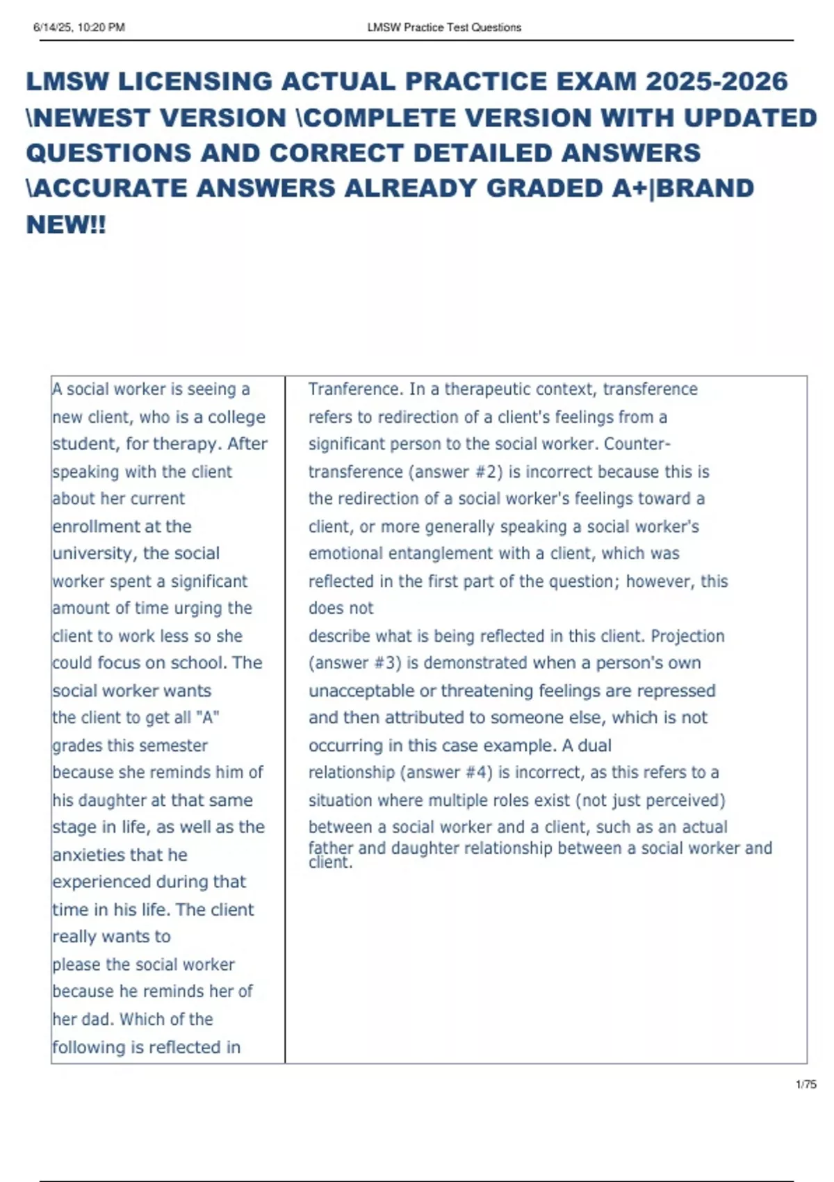 LMSW LICENSING ACTUAL PRACTICE EXAM NEWEST VERSION COMPLETE VERSION WITH UPDATED QUESTIONS AND CORRECT DETAILED ANSWERS ACCURATE ANSWERS ALREADY GRADED A+|BRAND NEW! LMSW LICENSING ACTUAL PRACTICE EXAM NEWEST VERSION COMPLETE VERSION WITH UPDATED QUESTIONS AND CORRECT DETAILED ANSWERS ACCURATE ANSWERS ALREADY GRADED A+|BRAND NEW! LMSW LICENSING ACTUAL PRACTICE EXAM NEWEST VERSION COMPLETE VERSION WITH UPDATED QUESTIONS AND CORRECT DETAILED ANSWERS ACCURATE ANSWERS ALREADY GRADED A+|BRAND NEW! LMSW LICENSING ACTUAL PRACTICE EXAM NEWEST VERSION COMPLETE VERSION WITH UPDATED QUESTIONS AND CORRECT DETAILED ANSWERS ACCURATE ANSWERS ALREADY GRADED A+|BRAND NEW! LMSW LICENSING ACTUAL PRACTICE EXAM NEWEST VERSION COMPLETE VERSION WITH UPDATED QUESTIONS AND CORRECT DETAILED ANSWERS ACCURATE ANSWERS ALREADY GRADED A+|BRAND NEW! LMSW LICENSING ACTUAL PRACTICE EXAM NEWEST VERSION COMPLETE VERSION WITH UPDATED QUESTIONS AND CORRECT DETAILED ANSWERS ACCURATE ANSWERS ALREADY GRADED A+|BRAND NEW! LMSW LICENSING ACTUAL PRACTICE EXAM NEWEST VERSION COMPLETE VERSION WITH UPDATED QUESTIONS AND CORRECT DETAILED ANSWERS ACCURATE ANSWERS ALREADY GRADED A+|BRAND NEW! LMSW LICENSING ACTUAL PRACTICE EXAM NEWEST VERSION COMPLETE VERSION WITH UPDATED QUESTIONS AND CORRECT DETAILED ANSWERS ACCURATE ANSWERS ALREADY GRADED A+|BRAND NEW! LMSW LICENSING ACTUAL PRACTICE EXAM NEWEST VERSION COMPLETE VERSION WITH UPDATED QUESTIONS AND CORRECT DETAILED ANSWERS ACCURATE ANSWERS ALREADY GRADED A+|BRAND NEW! LMSW LICENSING ACTUAL PRACTICE EXAM NEWEST VERSION COMPLETE VERSION WITH UPDATED QUESTIONS AND CORRECT DETAILED ANSWERS ACCURATE ANSWERS ALREADY GRADED A+|BRAND NEW! LMSW LICENSING ACTUAL PRACTICE EXAM NEWEST VERSION COMPLETE VERSION WITH UPDATED QUESTIONS AND CORRECT DETAILED ANSWERS ACCURATE ANSWERS ALREADY GRADED A+|BRAND NEW! LMSW LICENSING ACTUAL PRACTICE EXAM NEWEST VERSION COMPLETE VERSION WITH UPDATED QUESTIONS AND CORRECT DETAILED ANSWERS ACCURATE ANSWERS ALREADY GRADED A+|BRAND NEW!