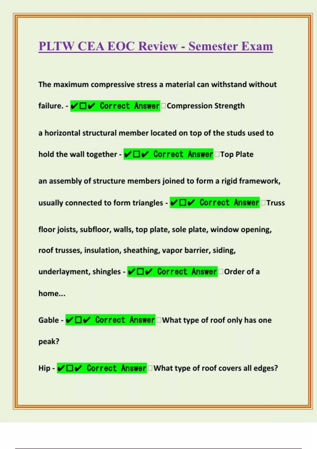 Gambrel - ✔️✔ Correct Answer What type of rood has many