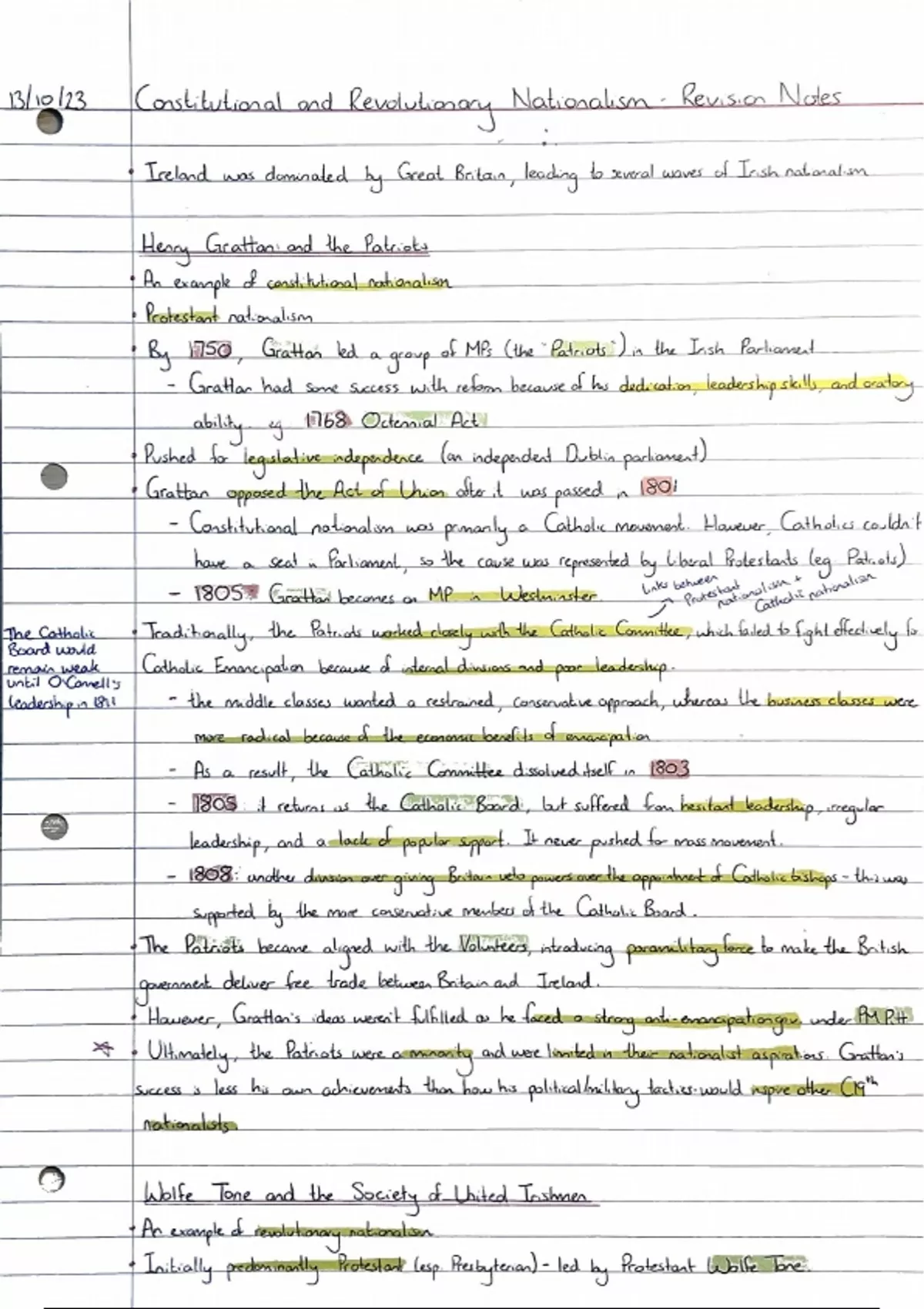 This is an in-depth, colour coded summary of Irish nationalism from 1800 to 1900, as part of the “Ireland Under The Union” section of A Level History. With these notes I got an A* in this topic. Happy studying!