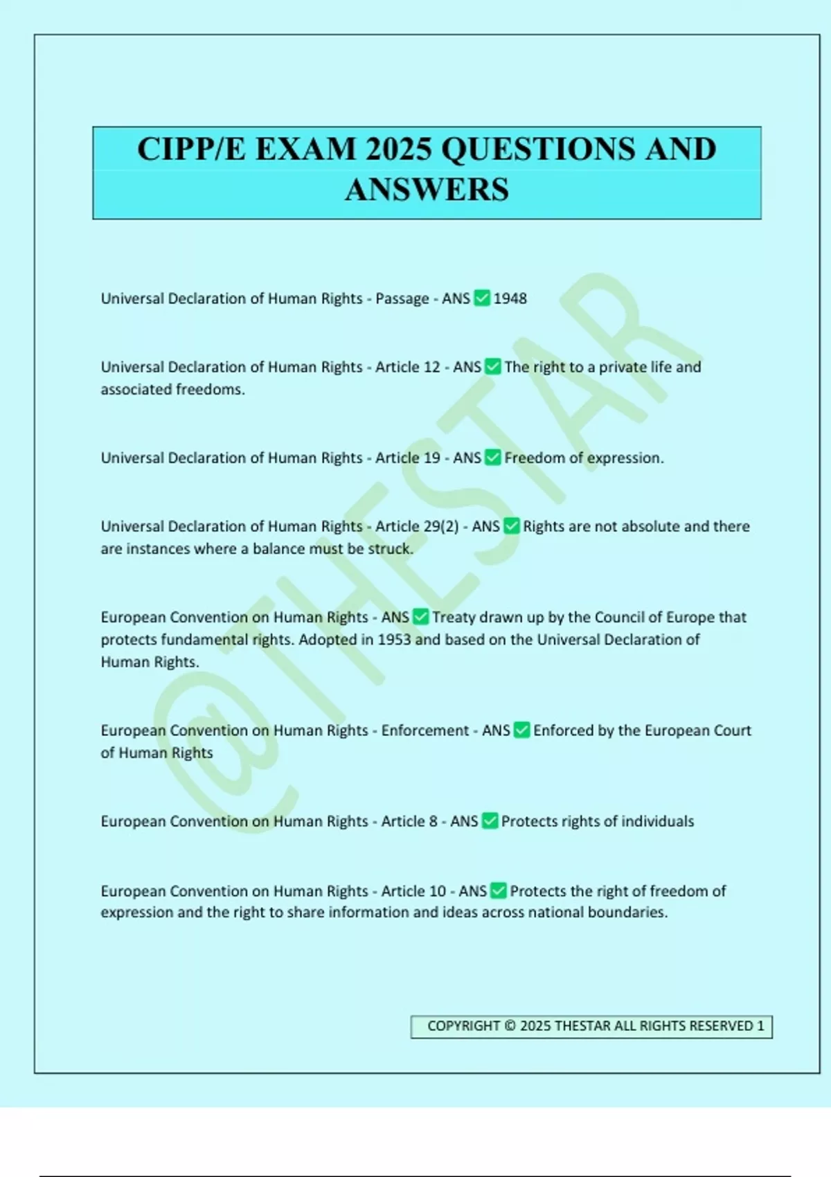 CIPP/E EXAM 2025 QUESTIONS AND ANSWERS