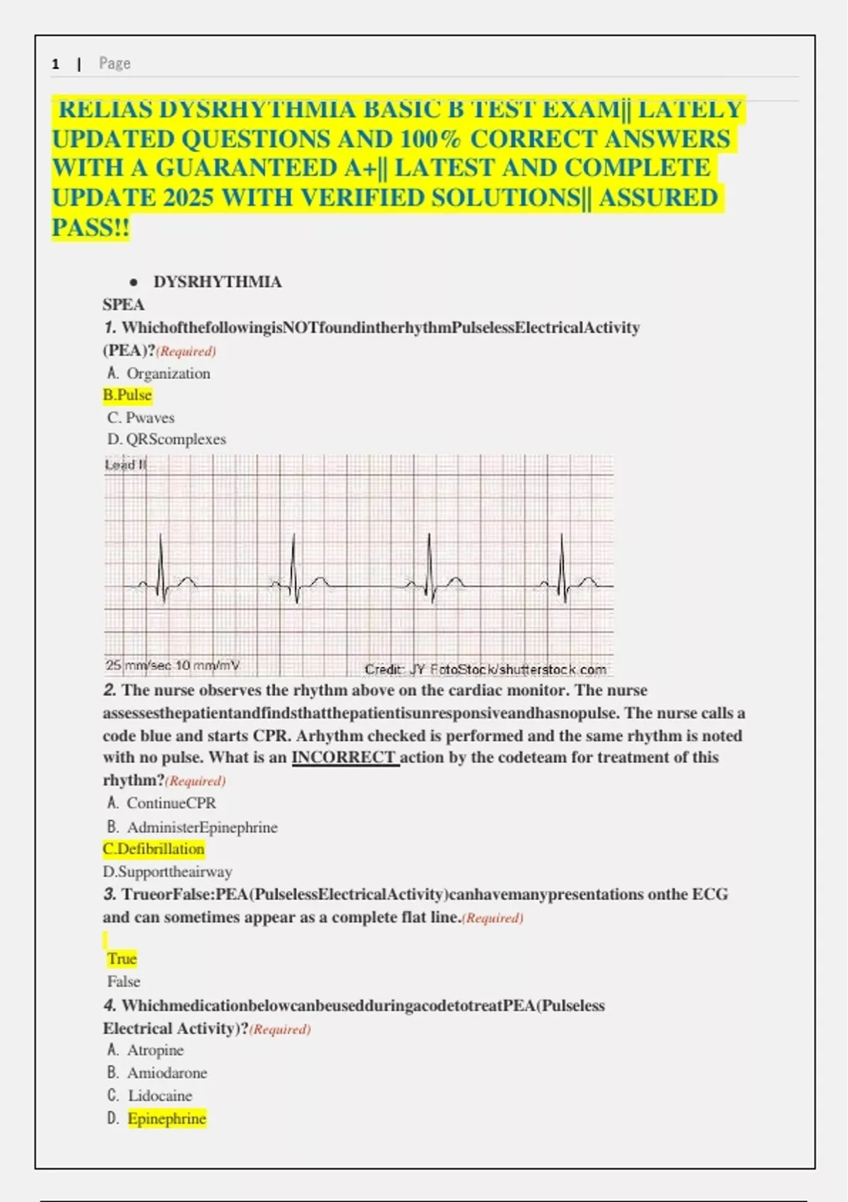 RELIAS DYSRHYTHMIA BASIC B TEST EXAM|| LATELY