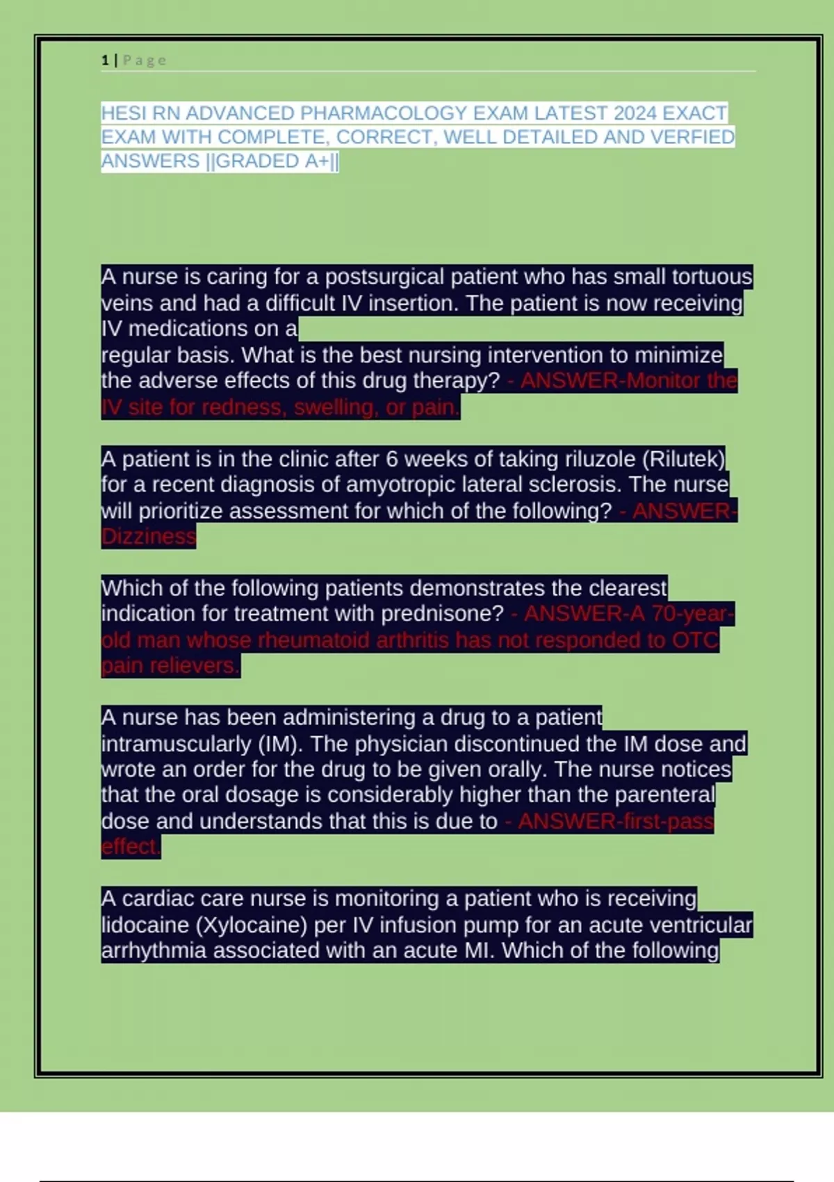HESI RN ADVANCED PHARMACOLOGY EXAM LATEST 2024 EXACT