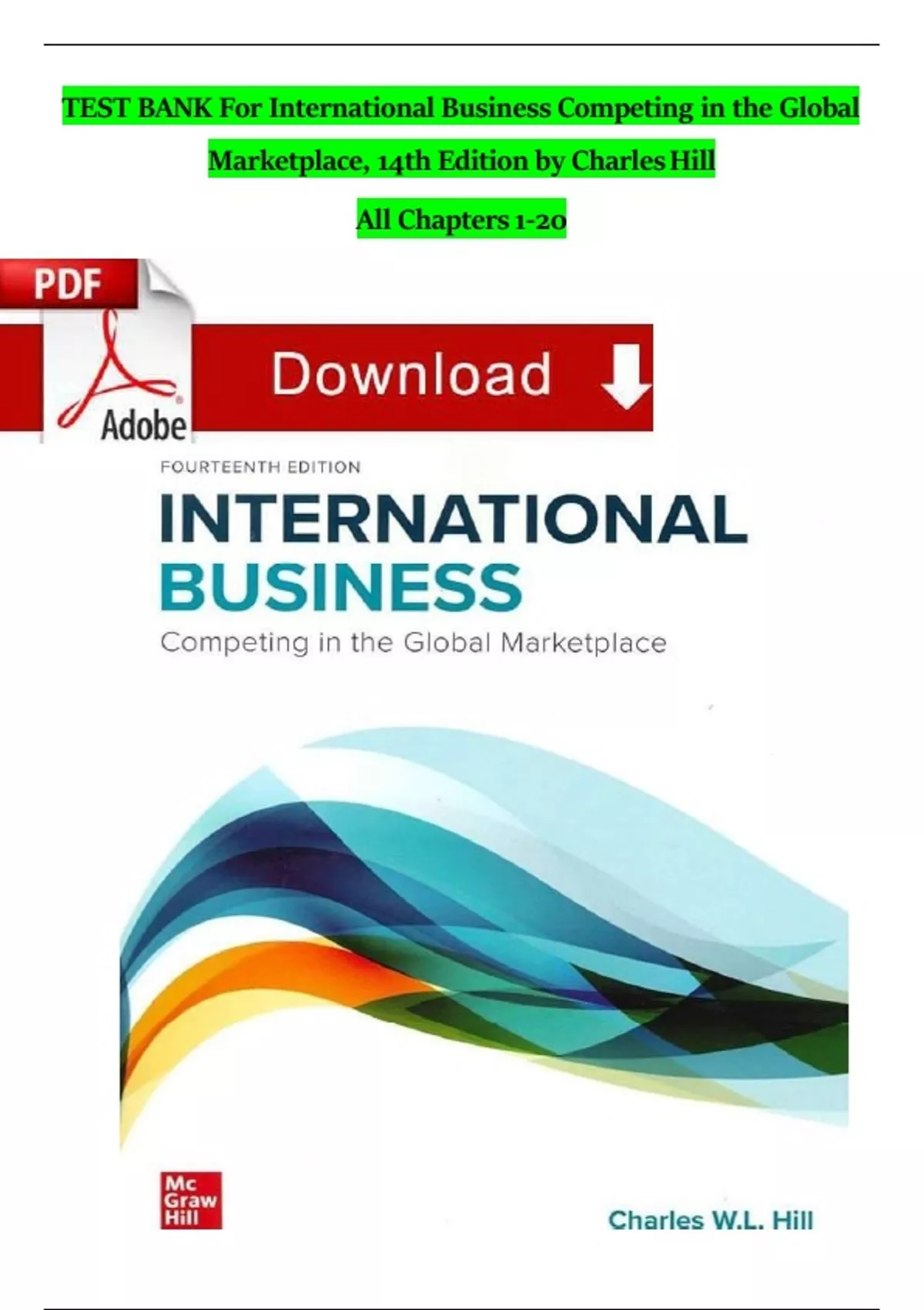 TEST BANK For International Business: Competing in the Global Marketplace, 14th Edition By Charles Hill. All Chapters 1-20 Fully Covered . (Complete Download) Updated A+ Guaranteed Pass.