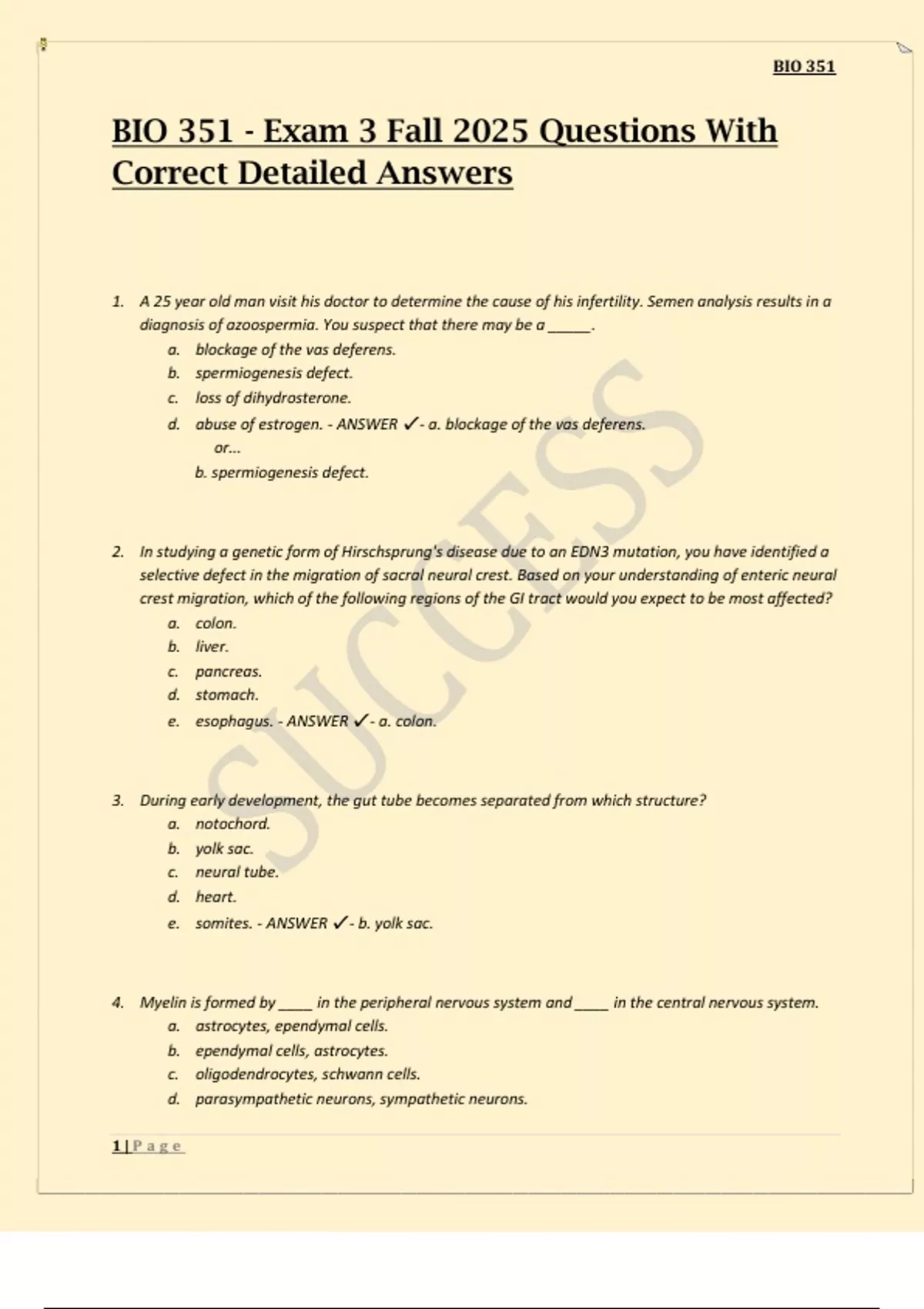 BIO 351 - Exam 3 Fall 2025 Questions With Correct Detailed Answers