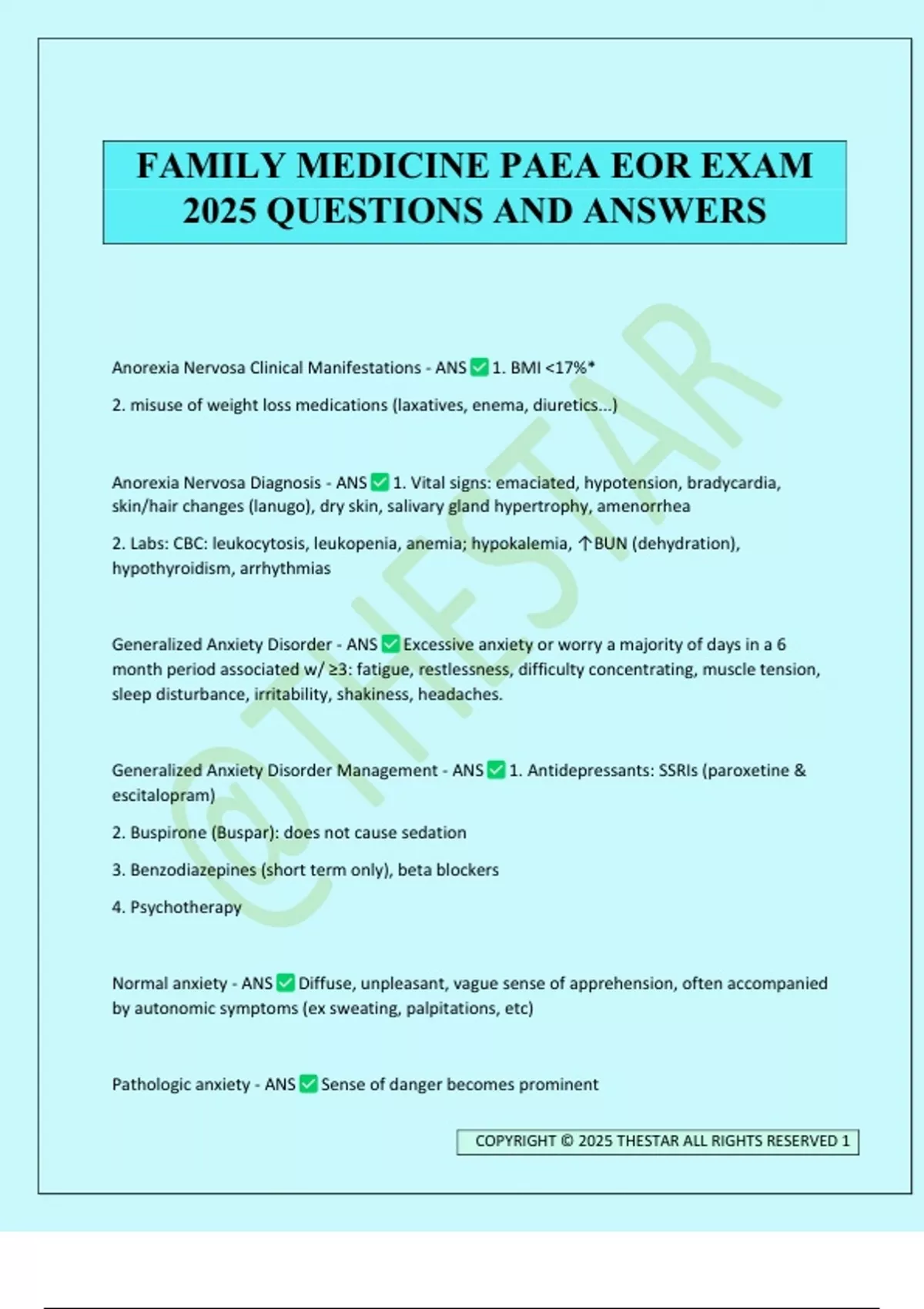 Generalized Anxiety Disorder - ANS Excessive anxiety or worry a majority of days in a 6