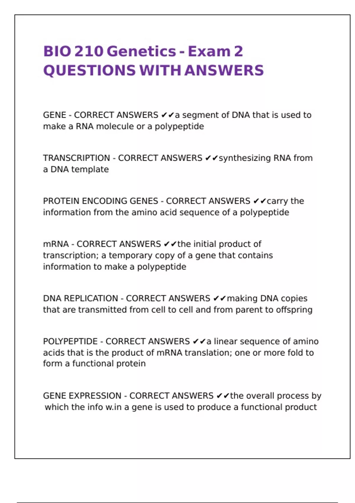 GENE EXPRESSION - CORRECT ANSWERS ✔✔the overall process by