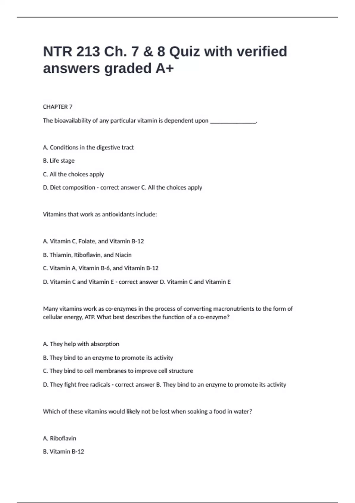 NTR 213 Ch. 7 & 8 Quiz with verified answers graded A+