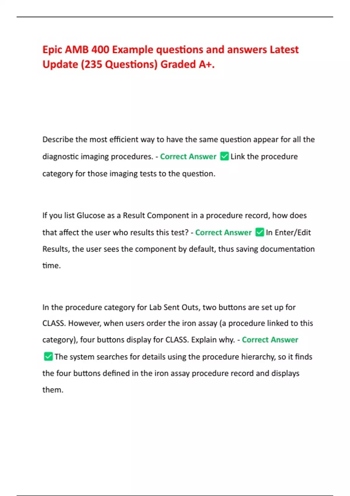 Epic AMB 400 Example questions and answers Latest