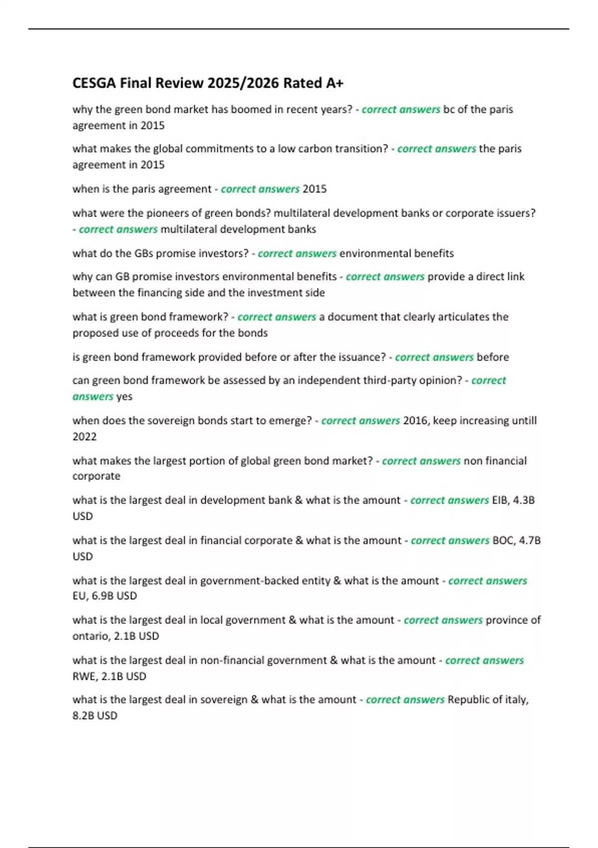 what is green bond framework? - correct answers a document that clearly articulates the