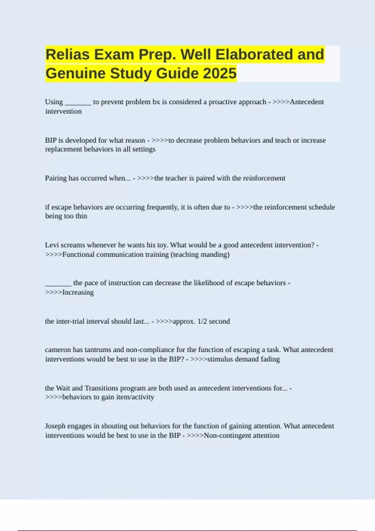 Relias Exam Prep. Well Elaborated and