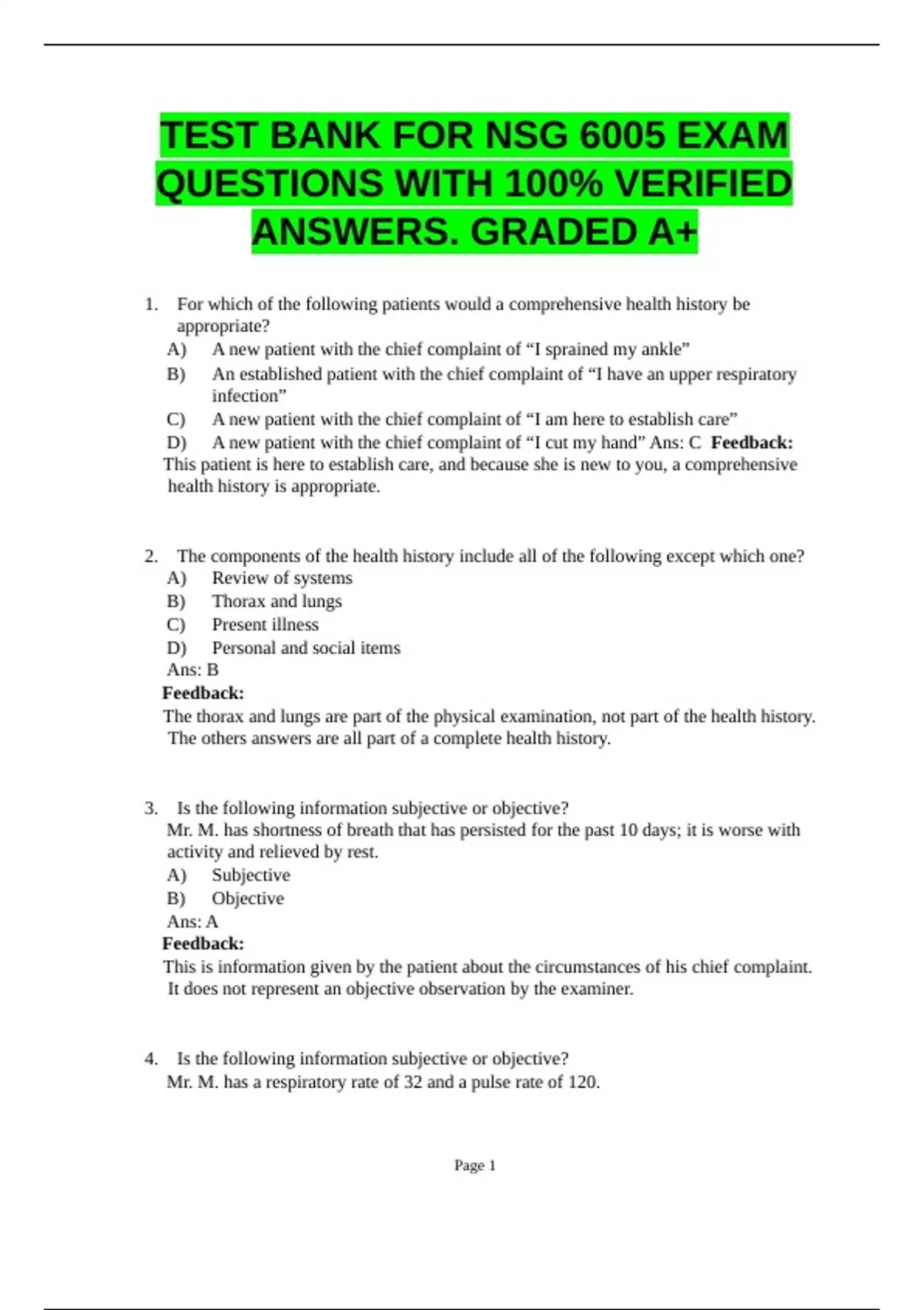 TEST BANK FOR NSG 6005 EXAM. QUESTIONS WITH 100% VERIFIED ANSWERS. GRADED A+