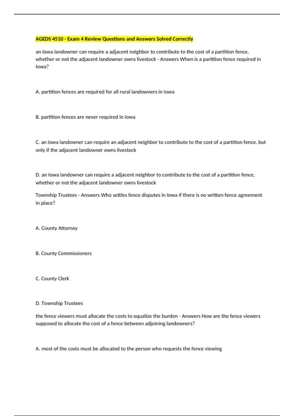 Township Trustees - Answers Who settles fence disputes in Iowa if there is no written fence agreement