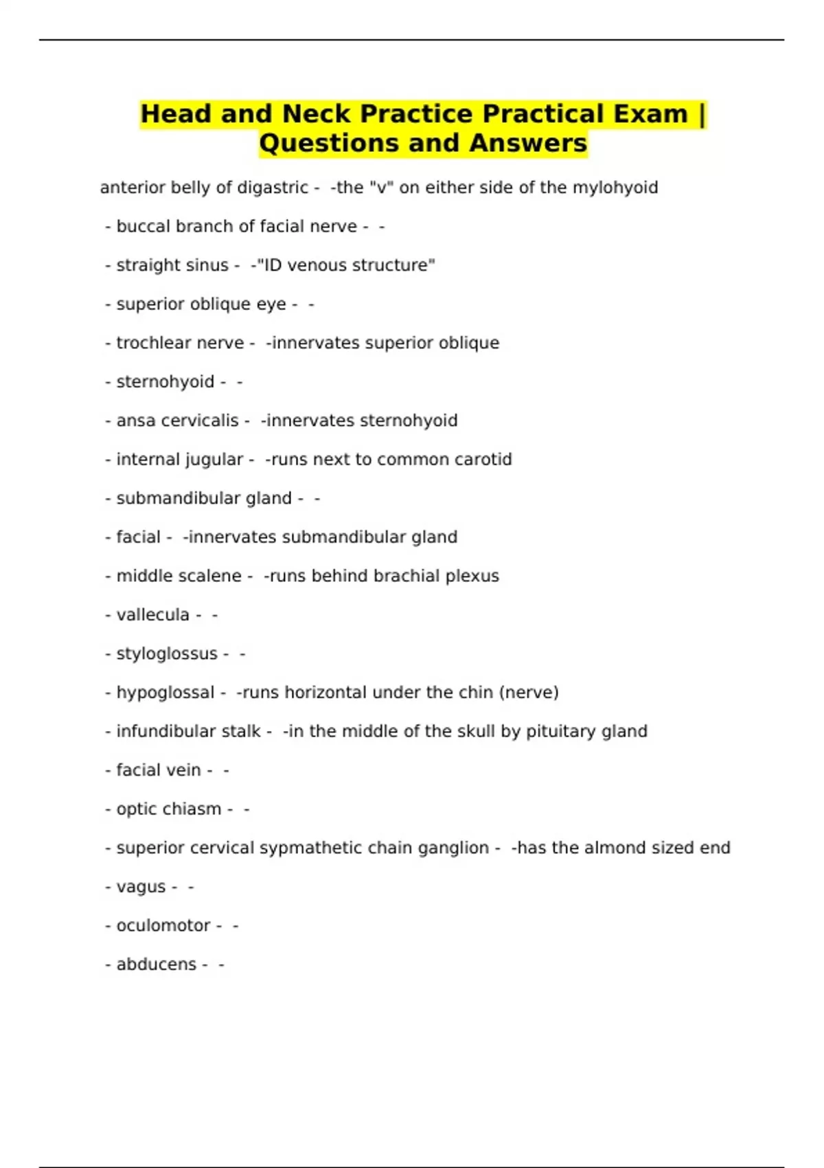 Head and Neck Practice Practical Exam |