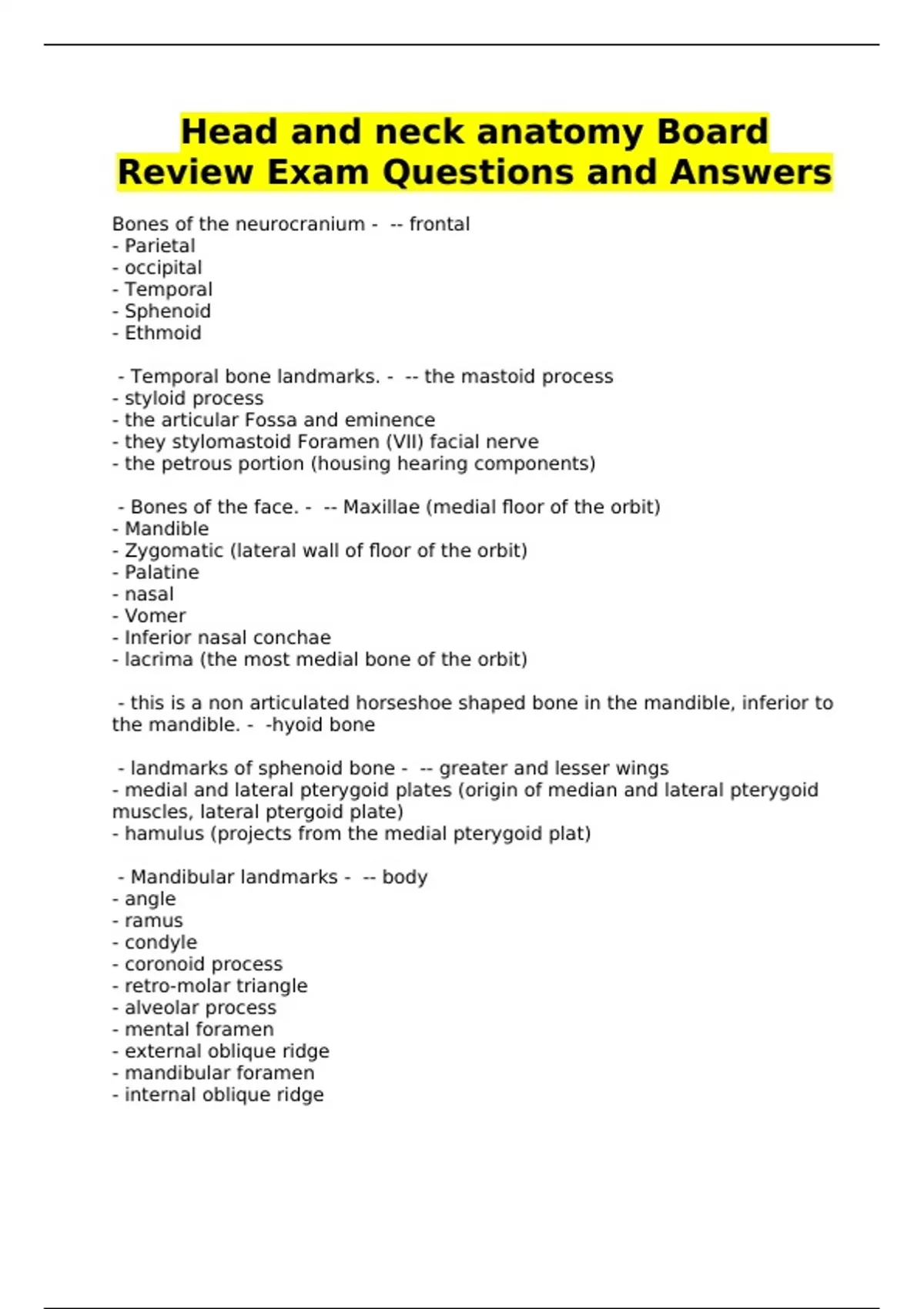 Head and neck anatomy Board