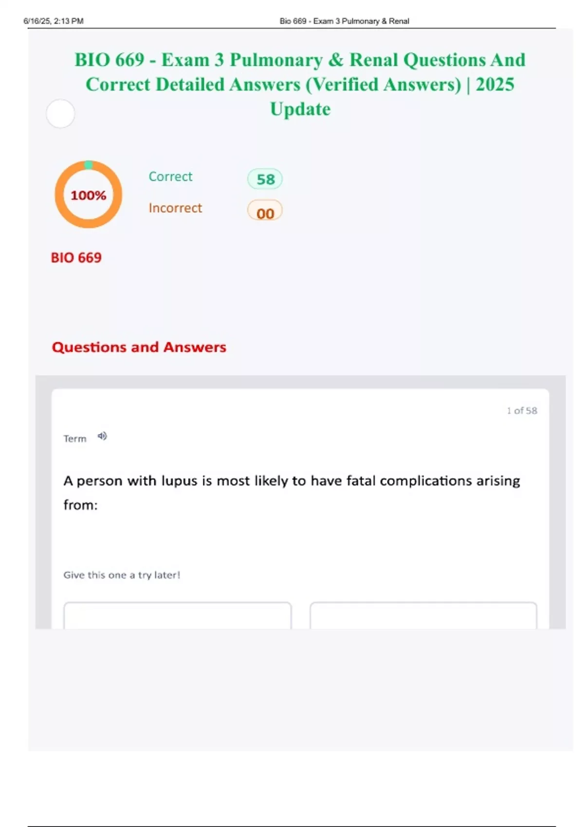 , 6/16/25, 2:13 PM Bio 669 - Exam 3 Pulmonary & Renal