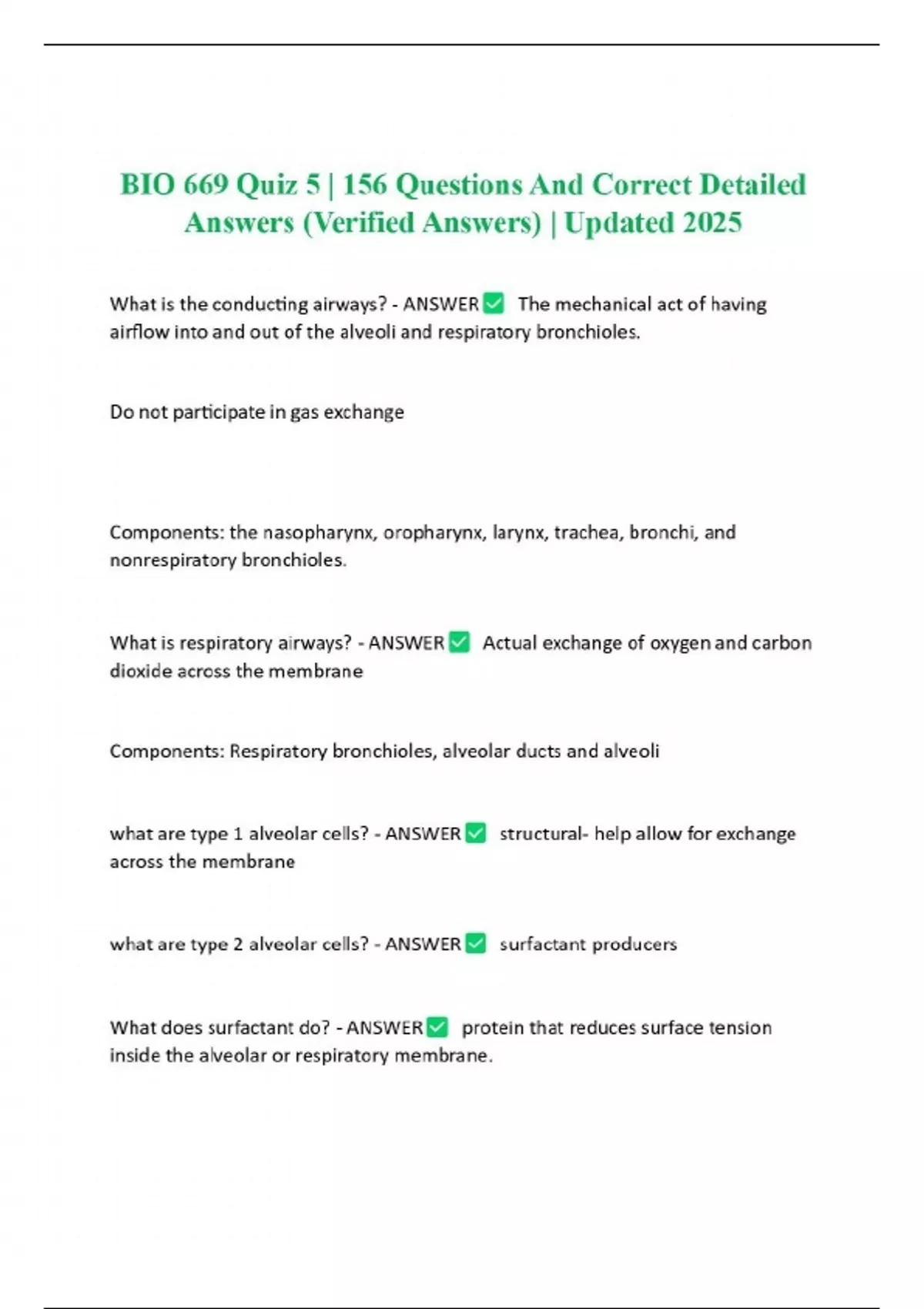 BIO 669 Quiz 5 | 156 Questions And Correct Detailed Answers (Verified Answers) | Updated 2025