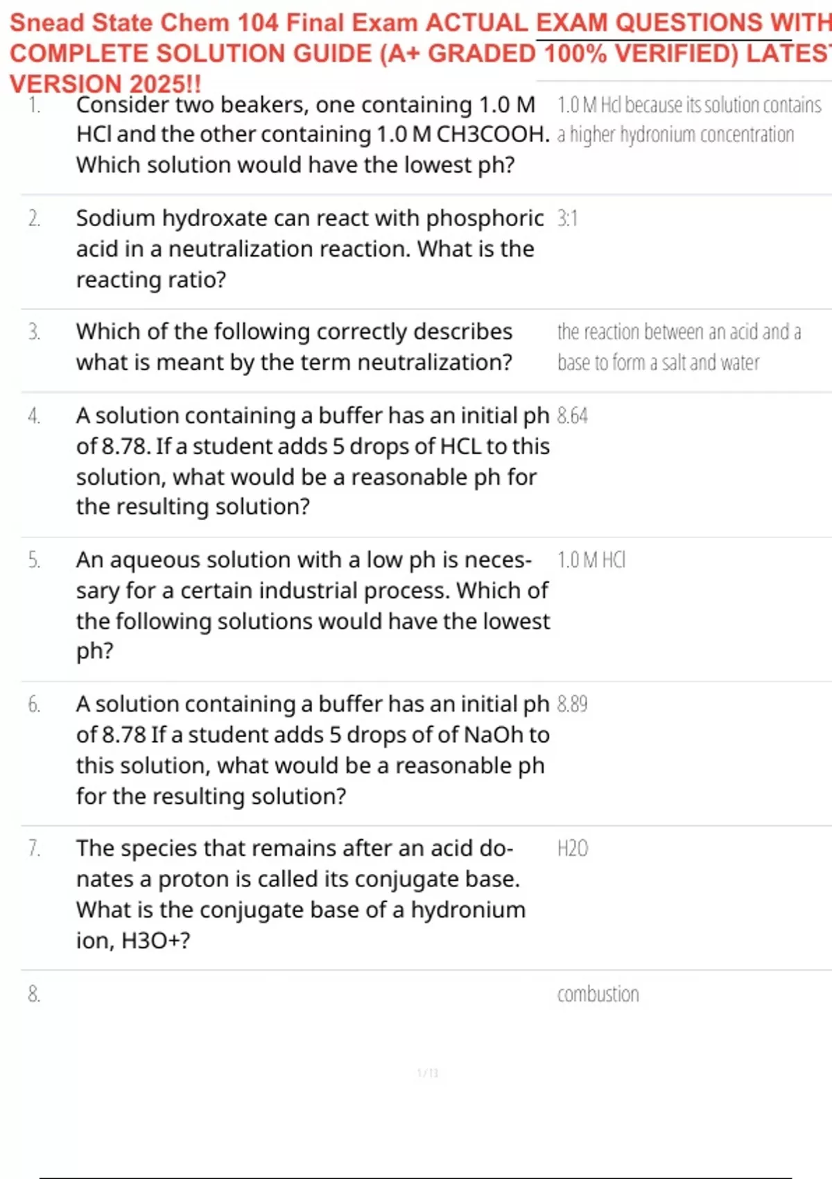 Snead State Chem 104 Final Exam ACTUAL EXAM QUESTIONS WITH COMPLETE SOLUTION GUIDE (A+ GRADED 100% VERIFIED) LATEST VERSION 2025!!