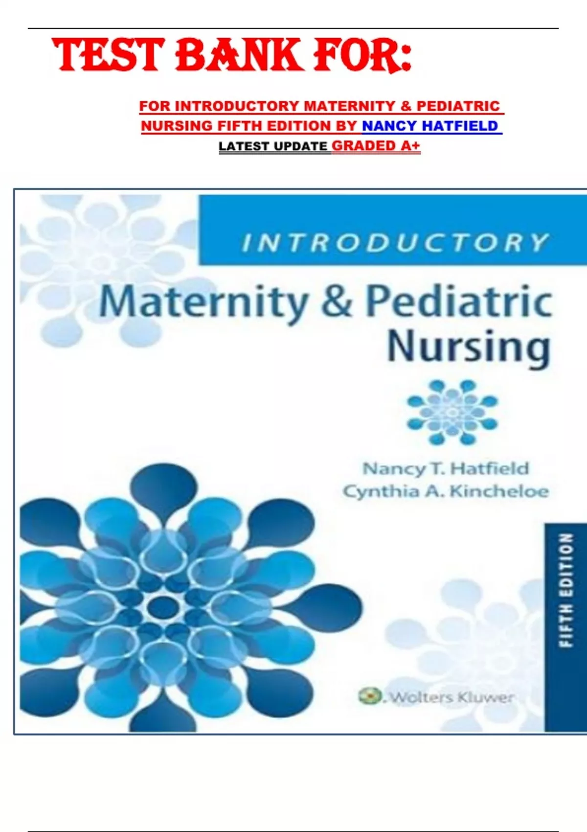 TEST BANK FOR: FOR INTRODUCTORY MATERNITY & PEDIATRIC NURSING FIFTH EDITION BY NANCY HATFIELD LATEST UPDATE GRADED A+