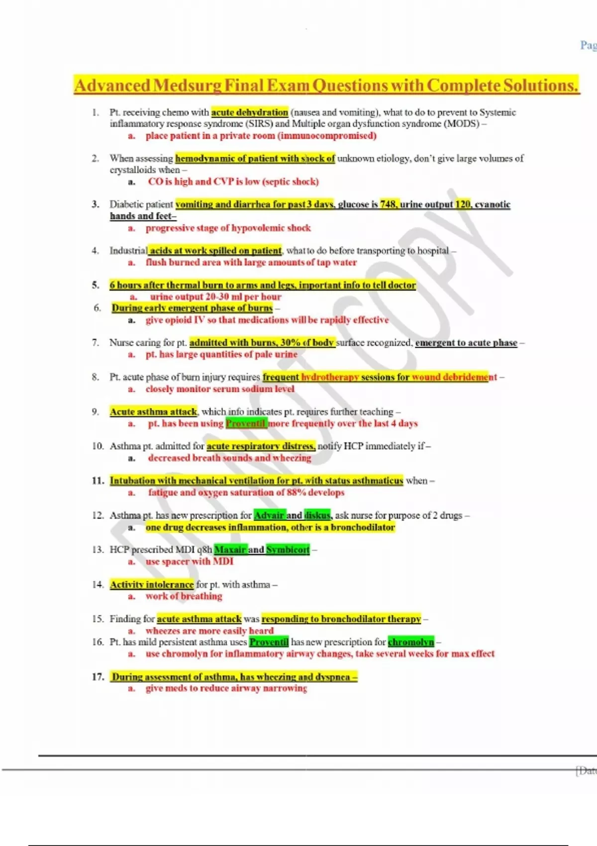 Advanced Medsurg Final Exam Questions with Complete Solutions.