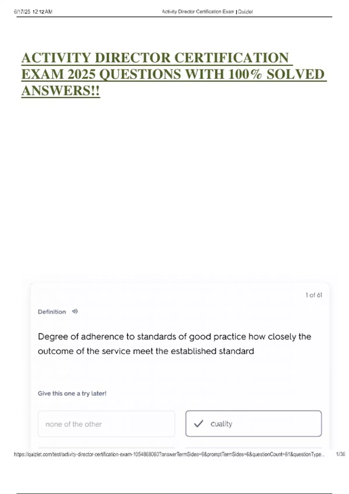ACTIVITY DIRECTOR CERTIFICATION EXAM 2025 QUESTIONS WITH 100% SOLVED ANSWERS!!