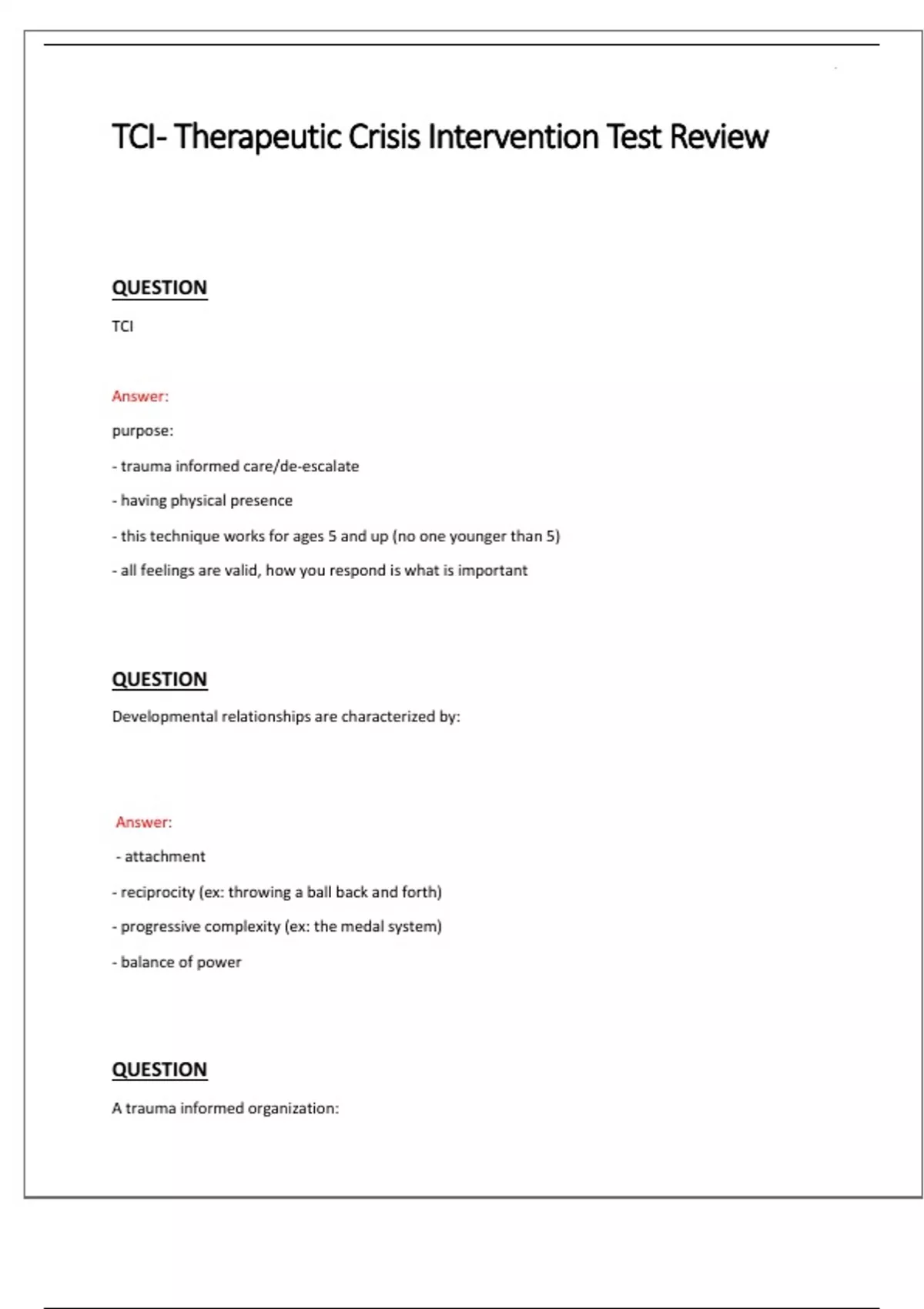 TCI - Therapeutic Crisis Intervention Test Review (Latest 2025 / 2026 Update) Questions and Correct answers (100% Verified Answers) A+ Succes...