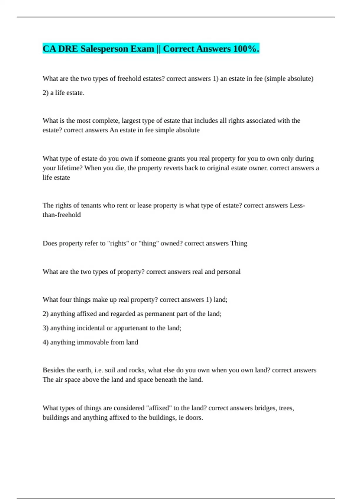 What are the two types of property? correct answers real and personal