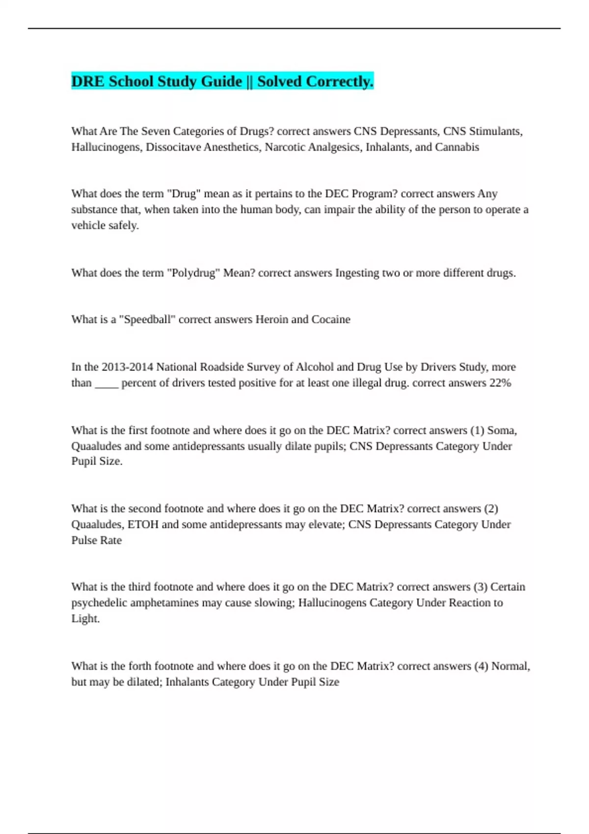 What Are The Seven Categories of Drugs? correct answers CNS Depressants, CNS Stimulants,