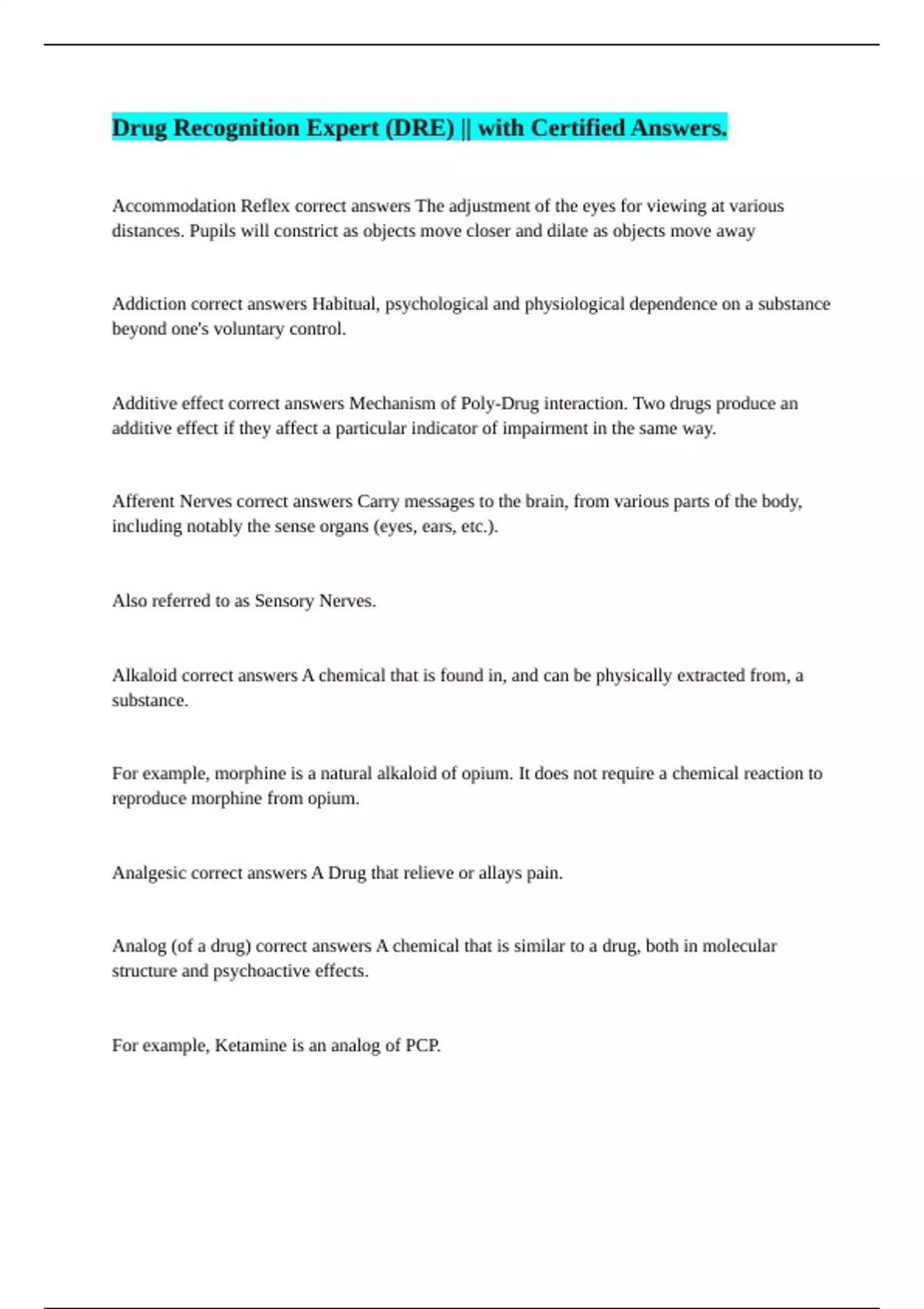 Analgesic correct answers A Drug that relieve or allays pain.