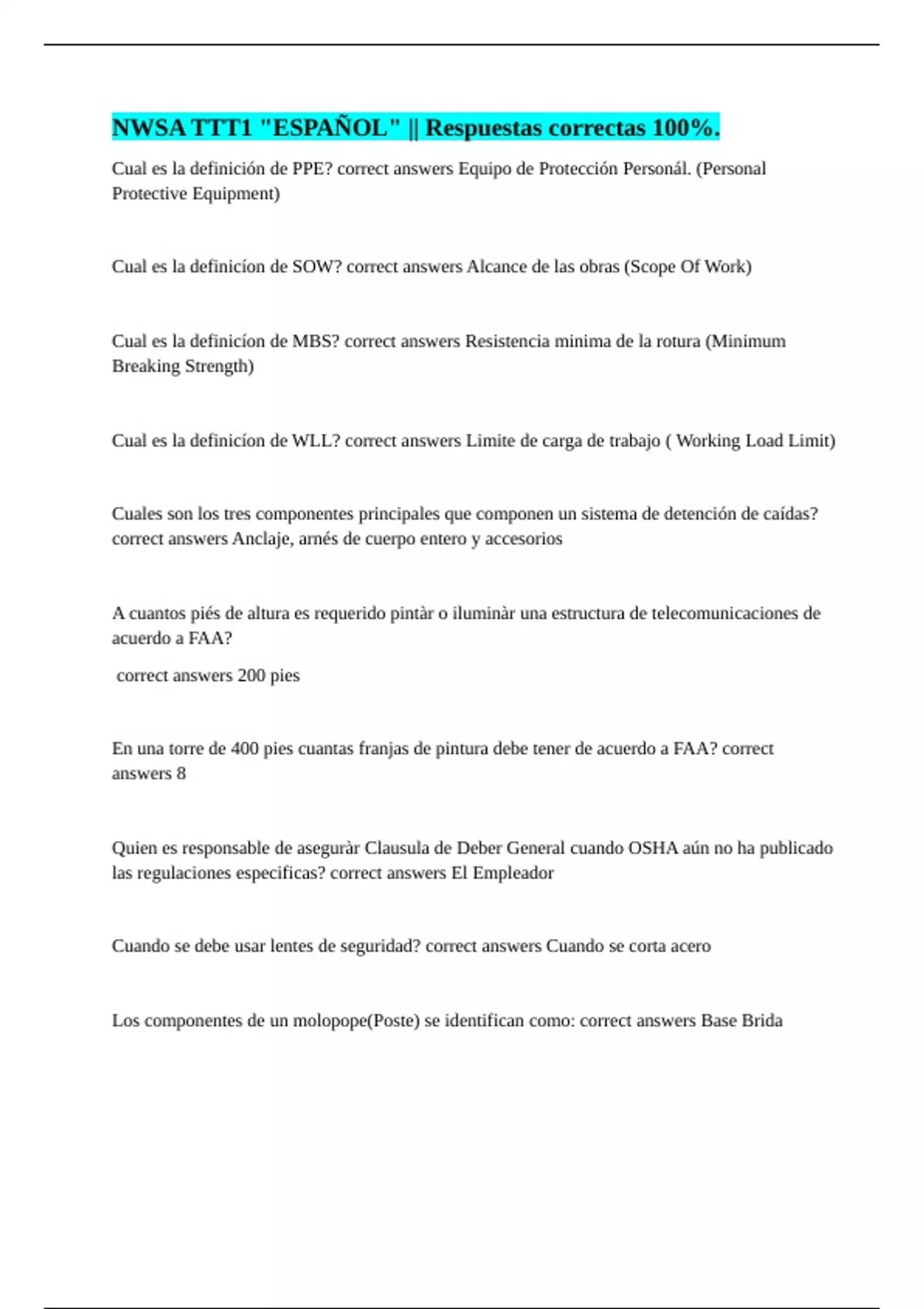 correct answers Anclaje, arnés de cuerpo entero y accesorios