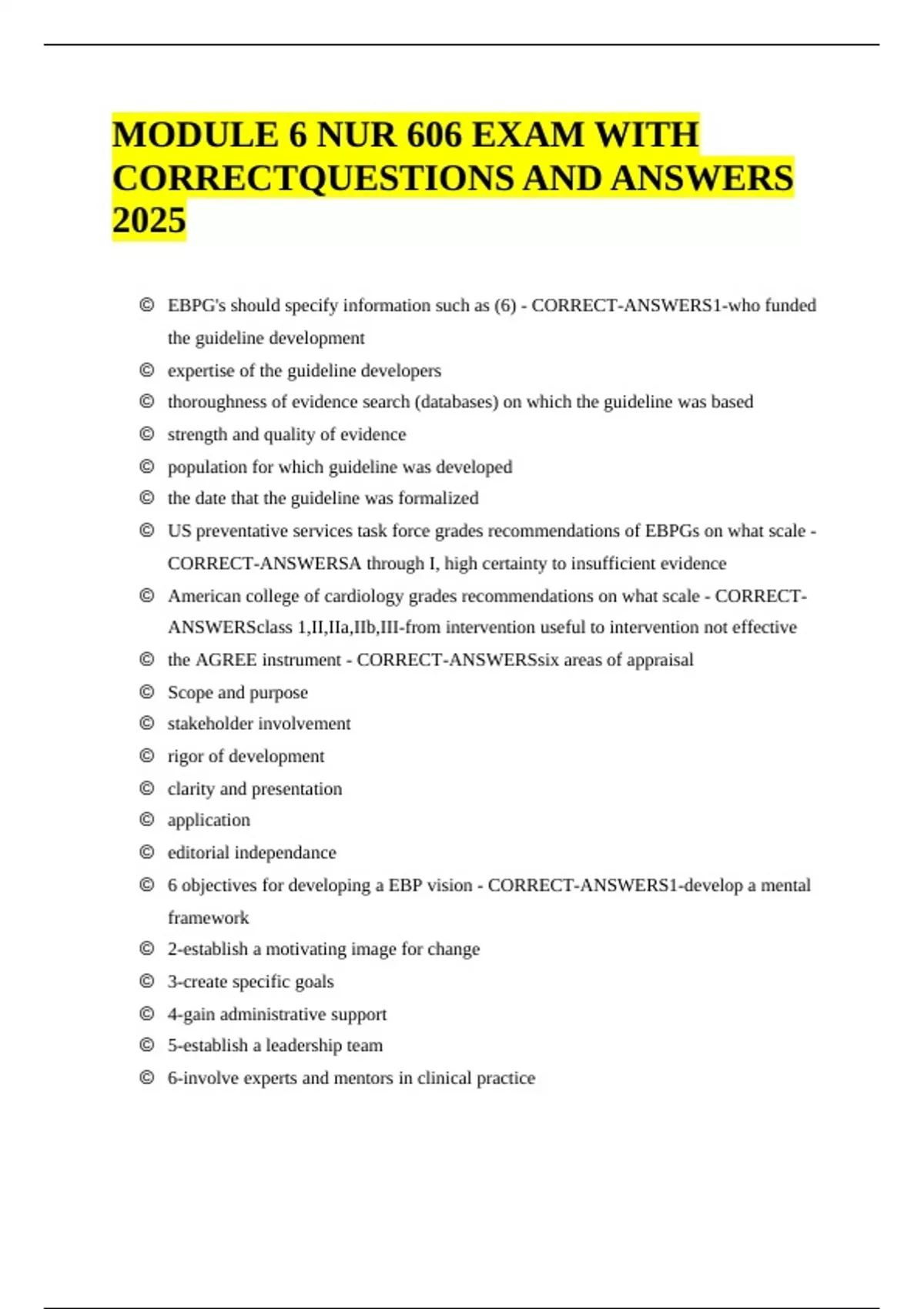 MODULE 6 NUR 606 EXAM WITH