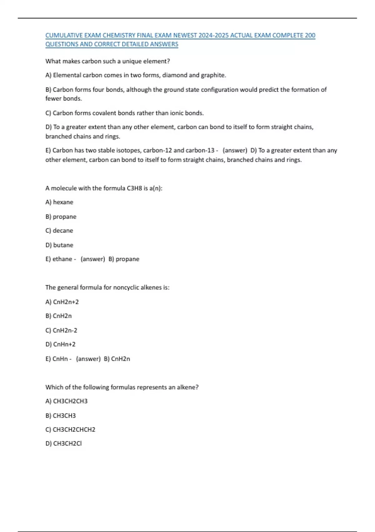,CUMULATIVE EXAM CHEMISTRY FINAL EXAM NEWEST 2024-2025 ACTUAL EXAM COMPLETE 200