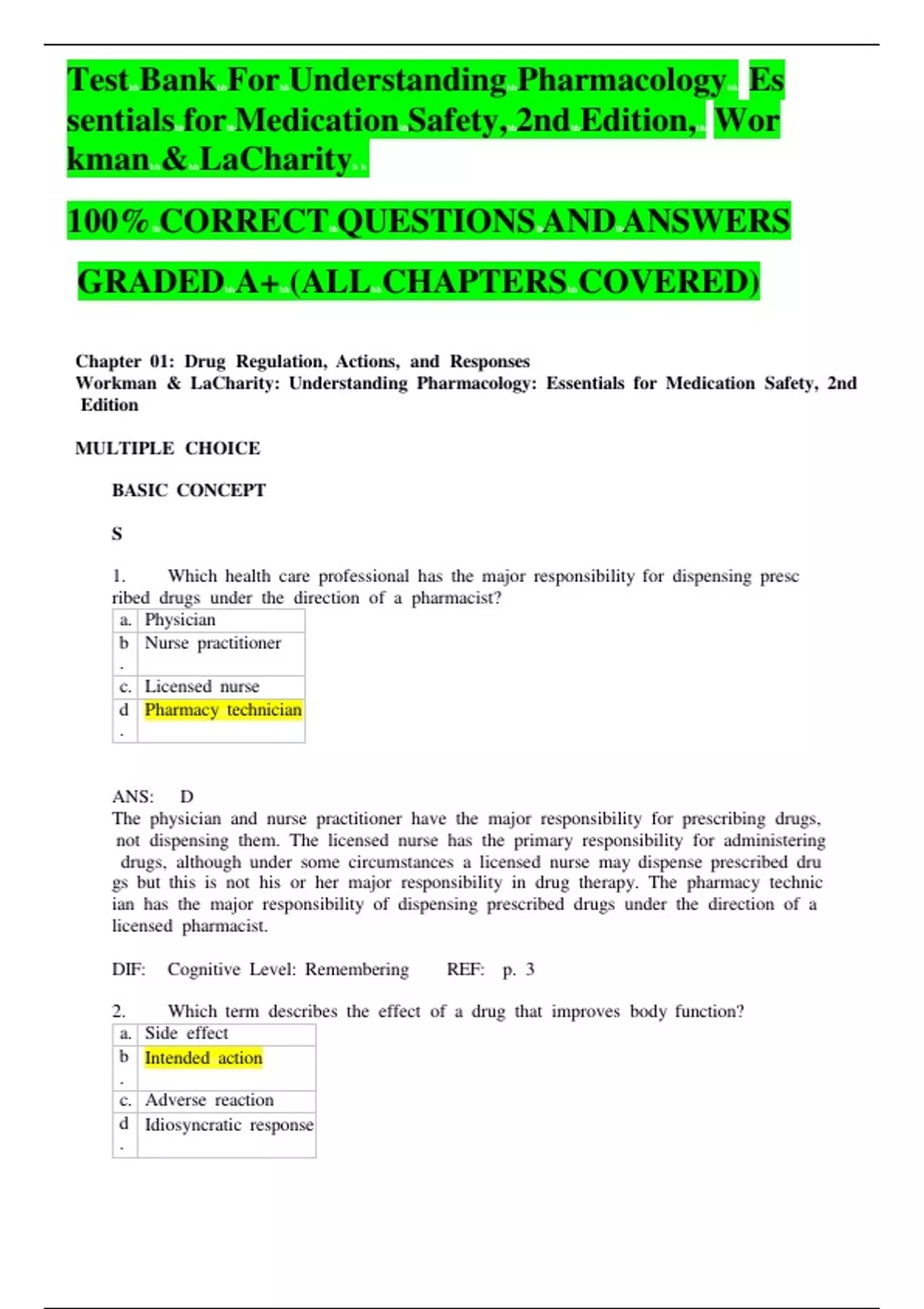 , Test Bank For Understanding Pharmacology Es