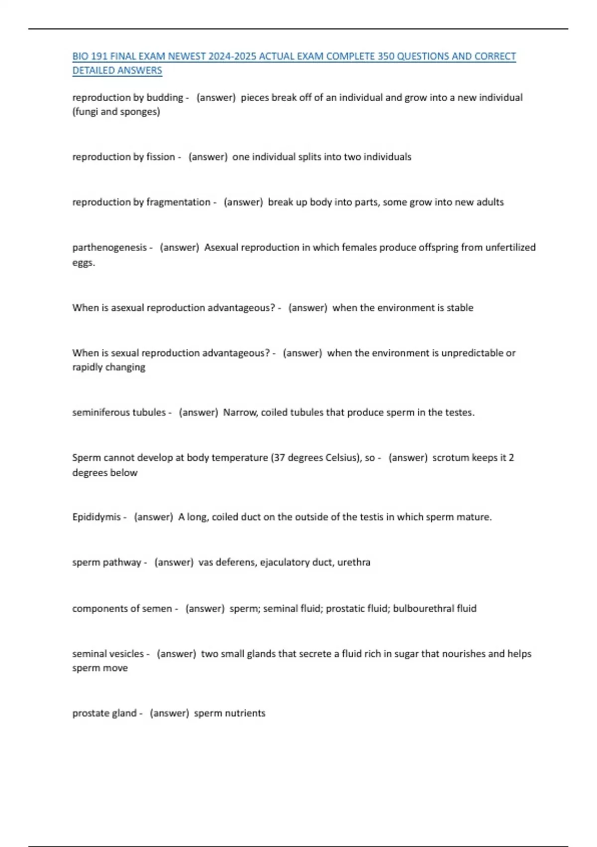 BIO 191 FINAL EXAM NEWEST 2024-2025 ACTUAL EXAM COMPLETE 350 QUESTIONS AND CORRECT