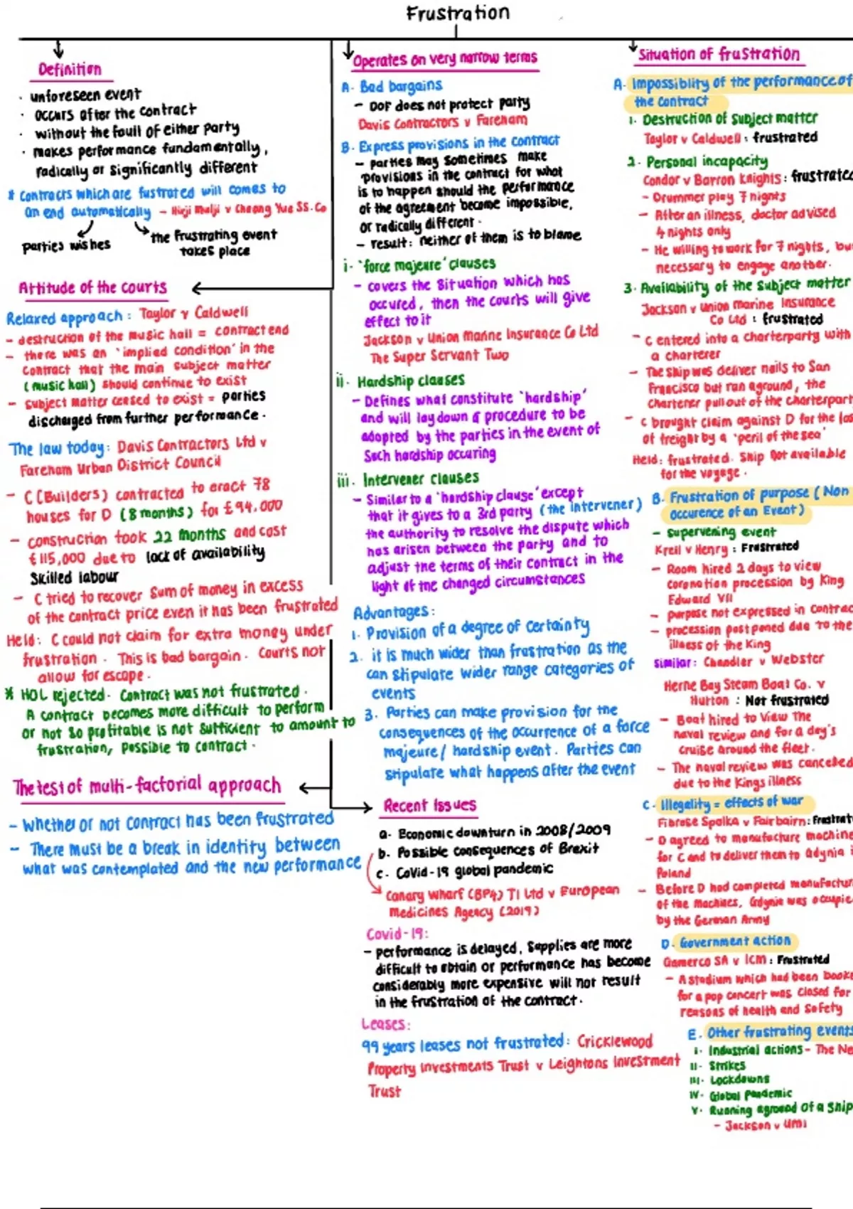 Handwritten frustration mind map note that completes with facts, points and cases for exam season