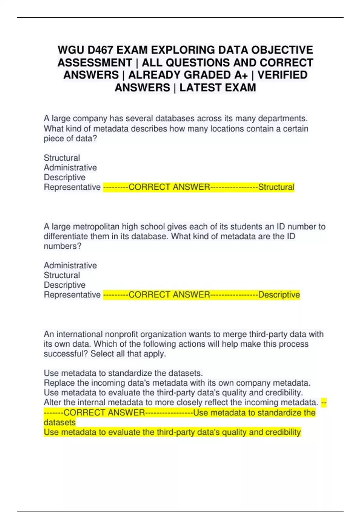 WGU D467 EXAM EXPLORING DATA OBJECTIVE ASSESSMENT | ALL QUESTIONS AND CORRECT ANSWERS | ALREADY GRADED A+ | VERIFIED ANSWERS | LATEST EXAM