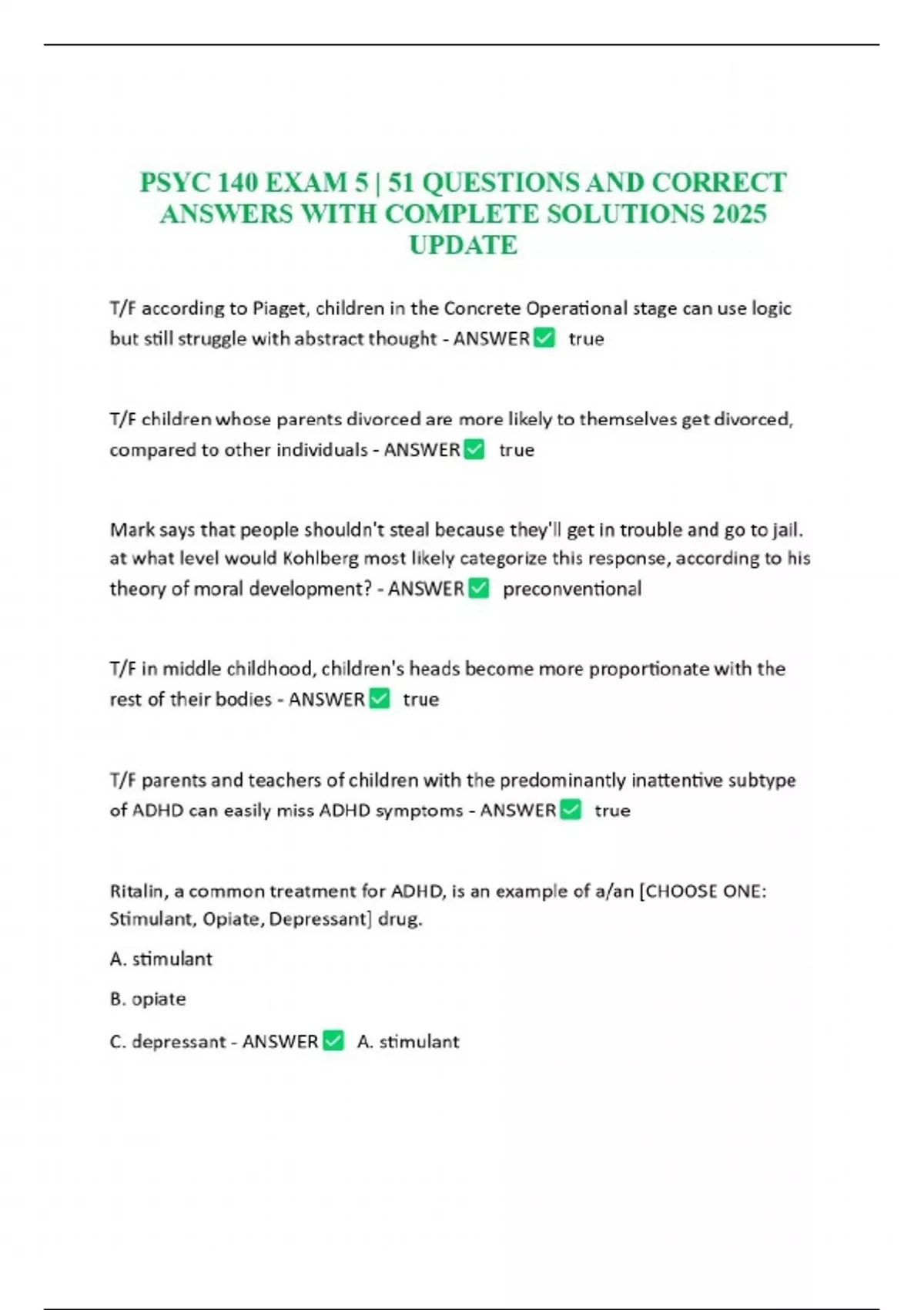 PSYC 140 BUNDLED EXAM QUESTIONS AND ANSWERS WITH COMPLETE SOLUTIONS 100% CORRECT | GARDED A+ | LATEST UPADATE 2025