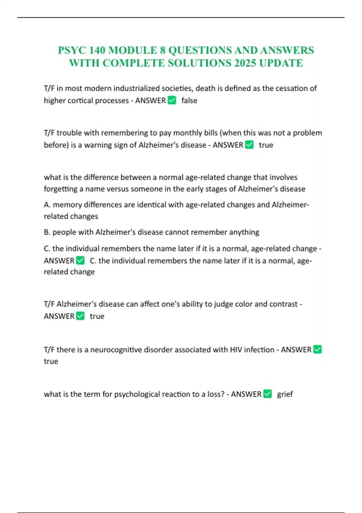 PSYC 140 MODULE 8 QUESTIONS AND ANSWERS WITH COMPLETE SOLUTIONS 2025 UPDATE