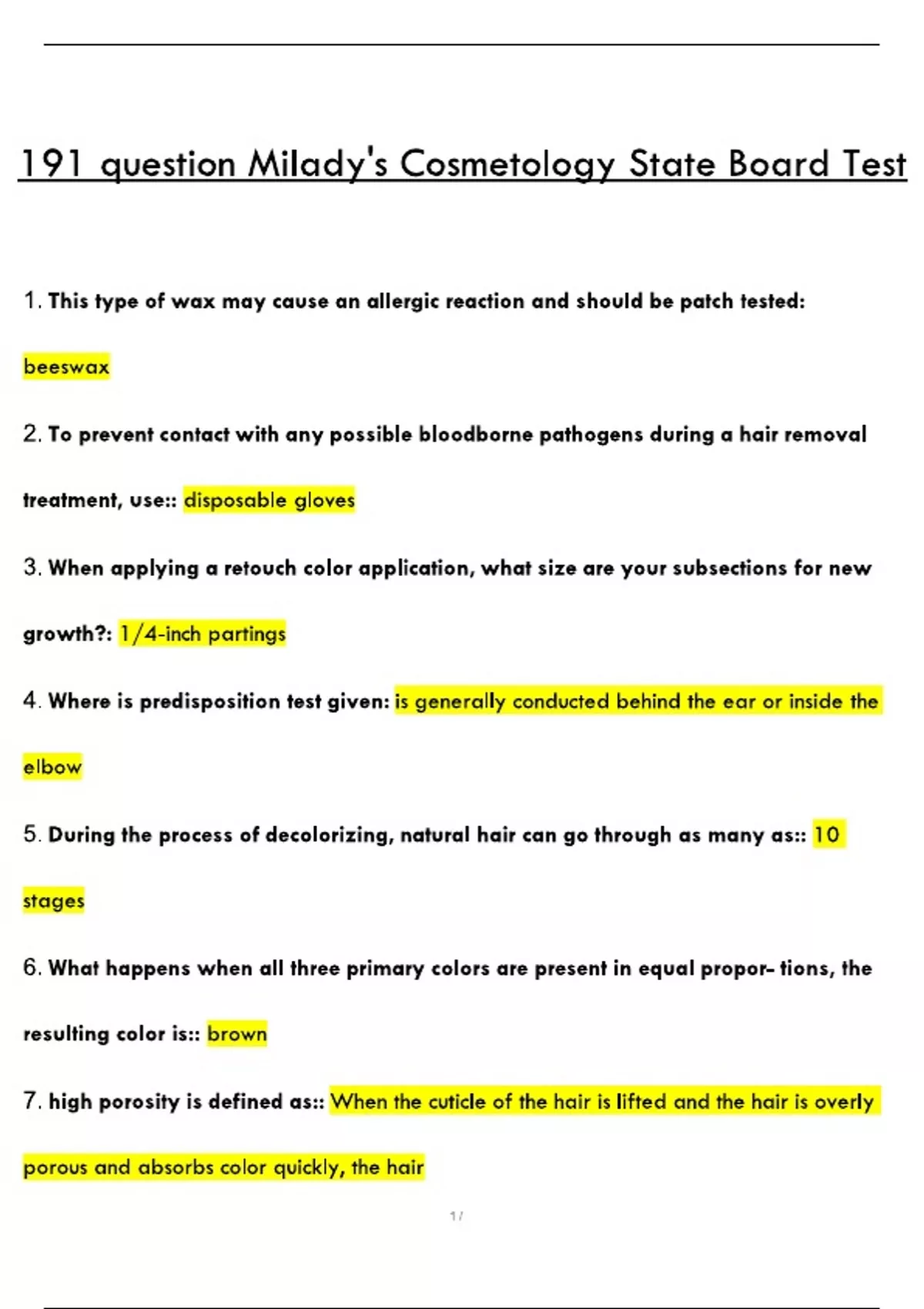 191 question Milady_s Cosmetology State Board Test 191 question Milady_s Cosmetology State Board Test 191 question Milady_s Cosmetology State Board Test