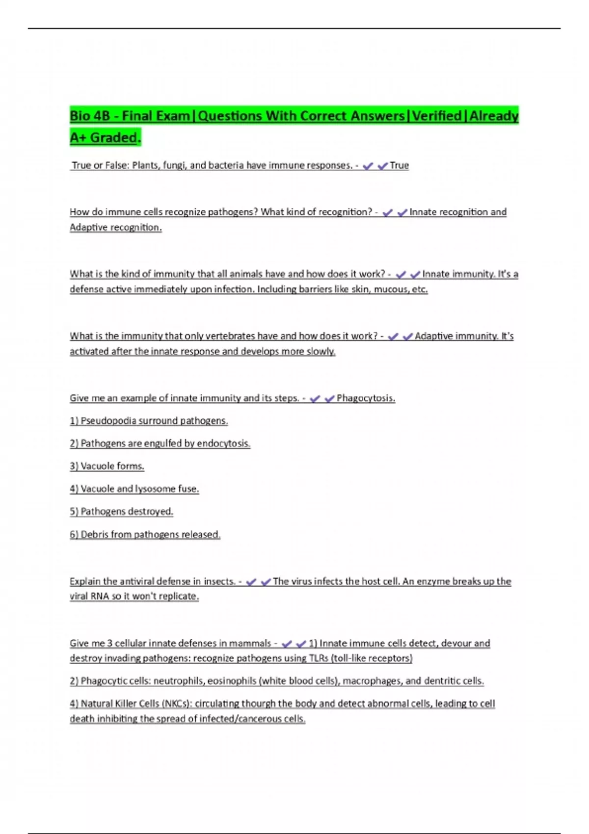 Bio 4B - Final Exam|Questions With Correct Answers|Verified|Already A+ Graded