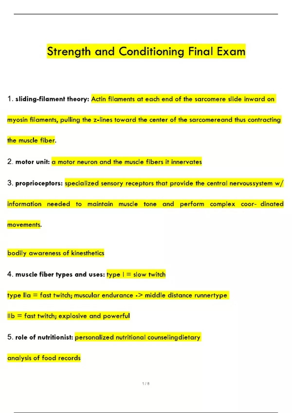 Strength and Conditioning Final Exam