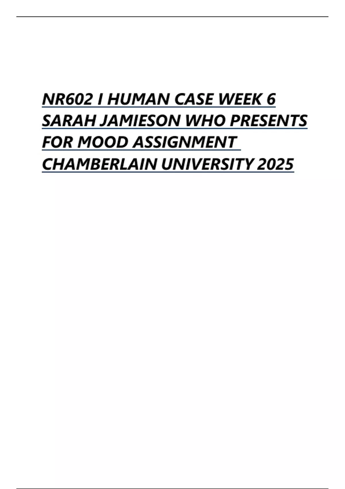 NR602 I HUMAN CASE WEEK 6 SARAH JAMIESON WHO PRESENTS FOR MOOD ASSIGNMENT CHAMBERLAIN UNIVERSITY 2025