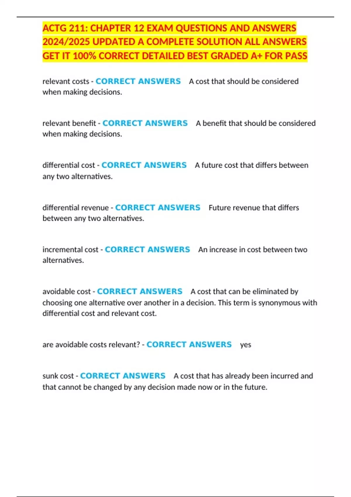 avoidable cost - CORRECT ANSWERS A cost that can be eliminated by