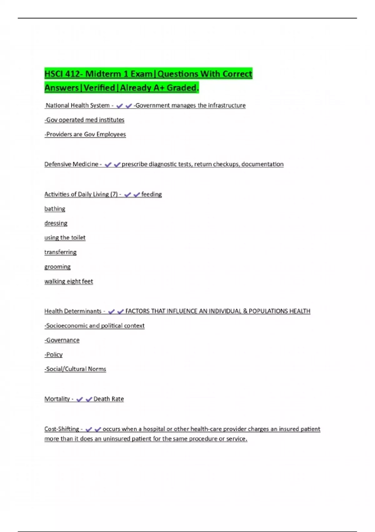 HSCI 412- Midterm 1 Exam|Questions With Correct Answers|Verified|Already A+ Graded