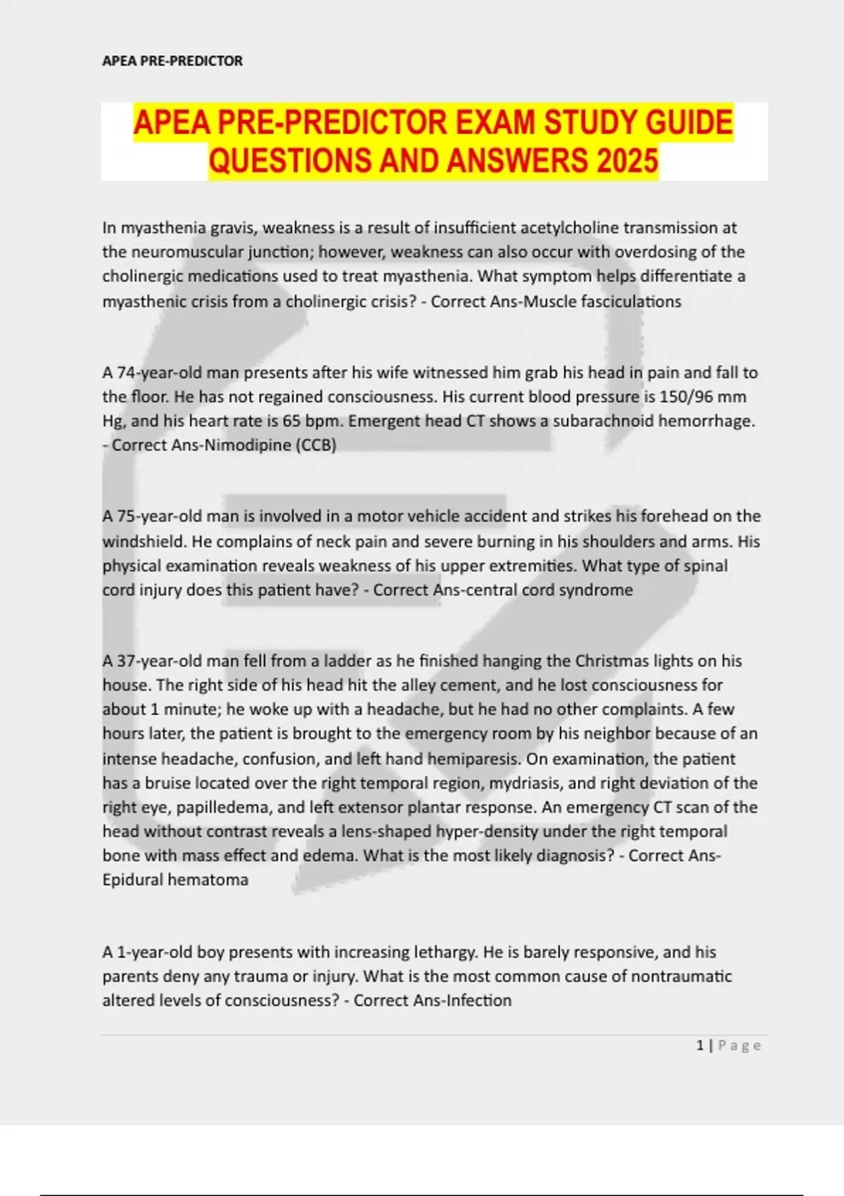 APEA PRE-PREDICTOR EXAM STUDY GUIDE QUESTIONS AND ANSWERS 2025