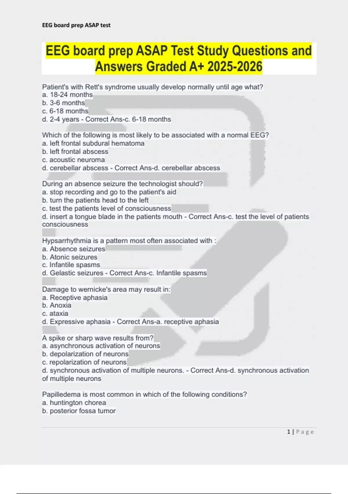 EEG board prep ASAP Test Study Questions and