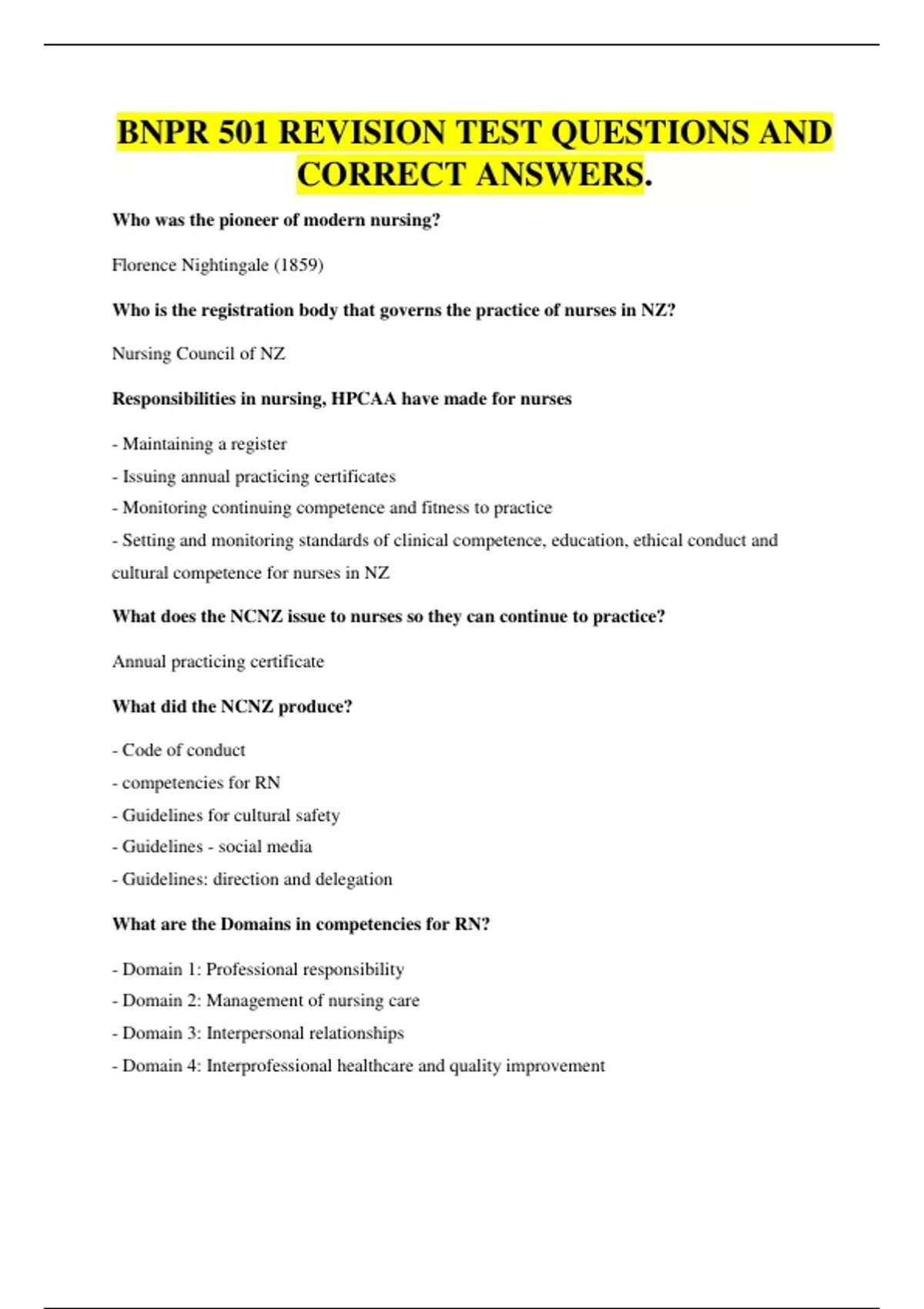 BNPR 501 REVISION TEST QUESTIONS AND CORRECT ANSWERS