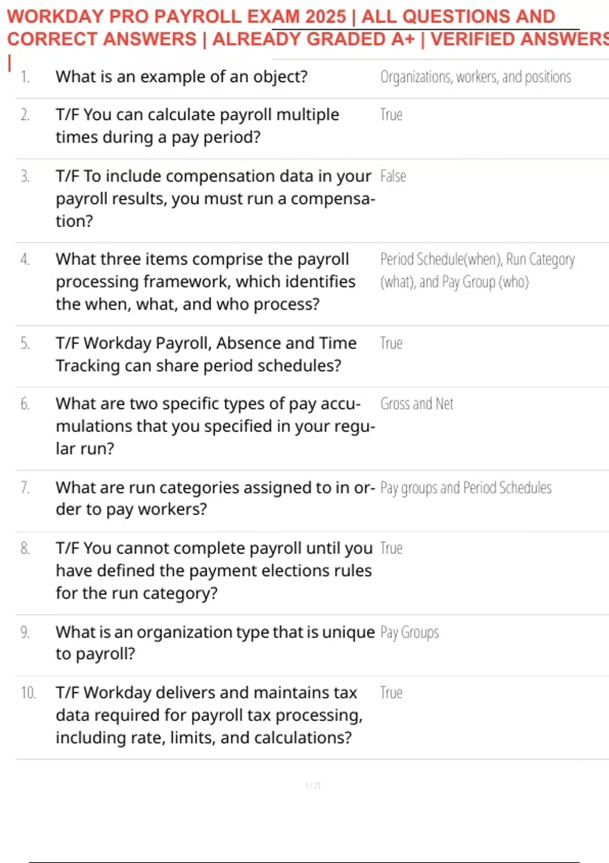 WORKDAY PRO PAYROLL EXAM 2025 | ALL QUESTIONS AND