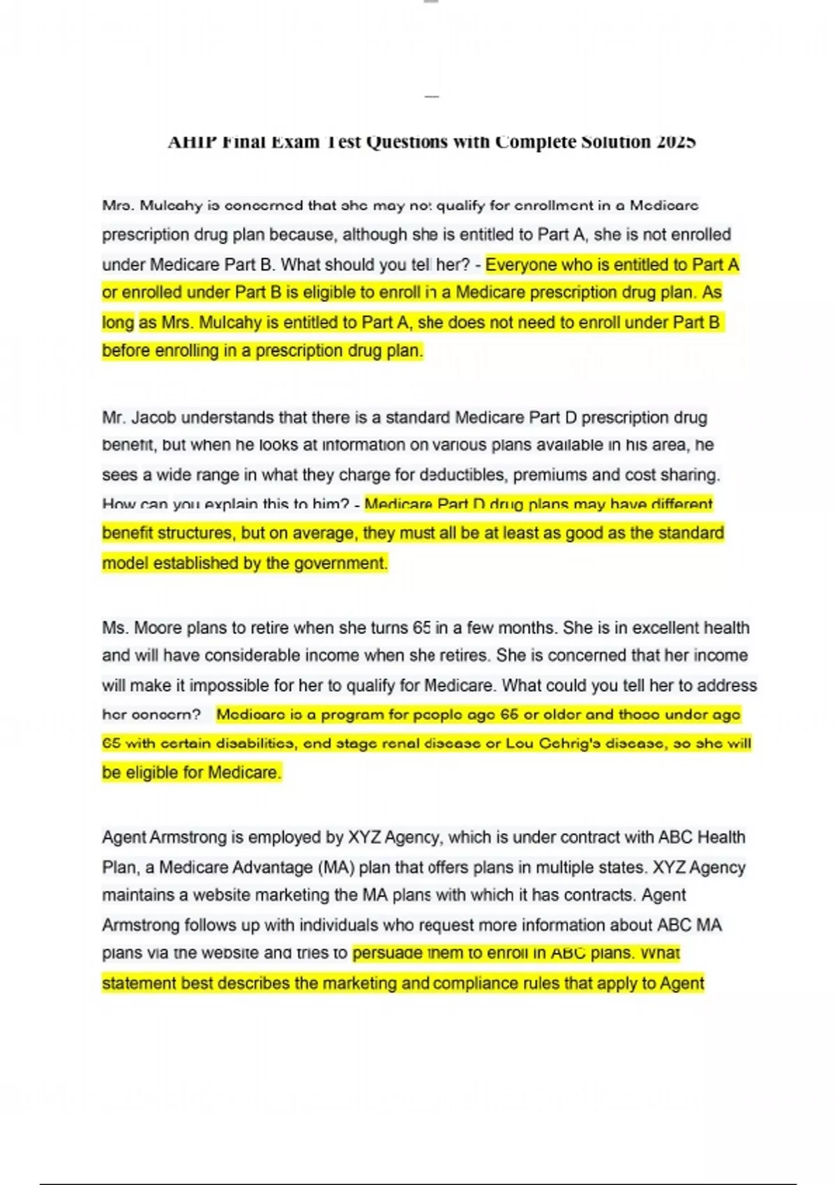 AHIP Final Exam Test Questions with Complete Solution 2025